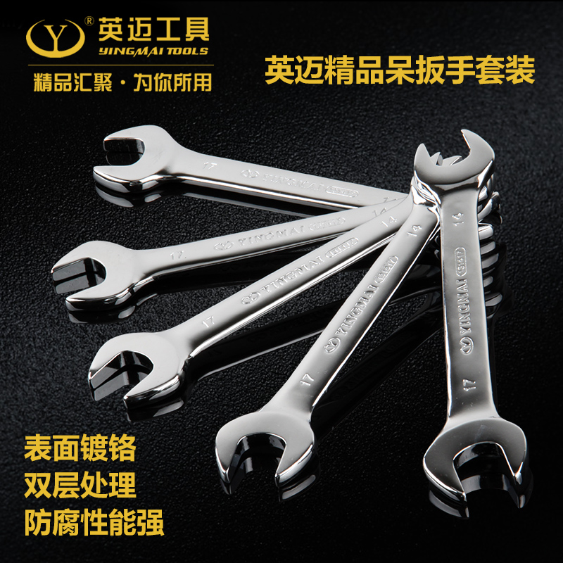 英迈铬钒钢CR-V镜面两用扳手呆扳手开口扳手双头呆扳手6-36mm