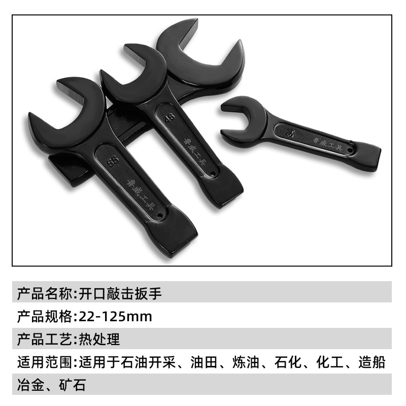 英迈 电泳45钢敲击呆扳手 重型加厚大扳手 敲击开口扳手