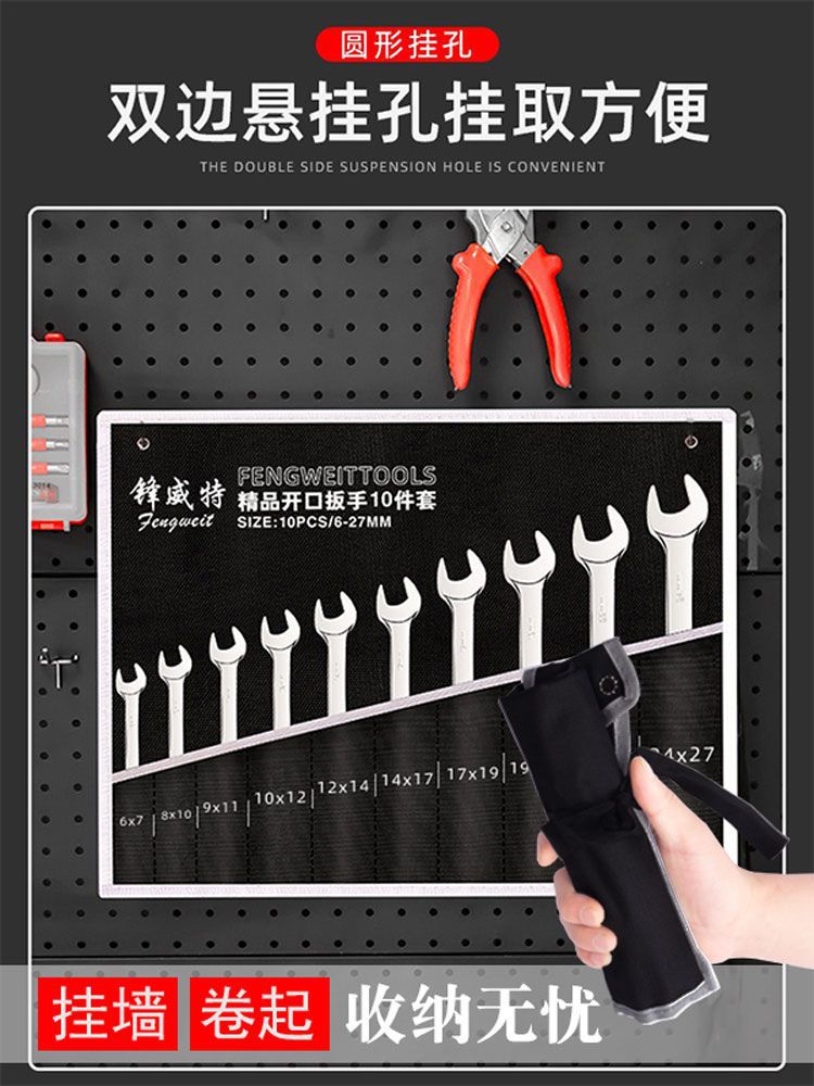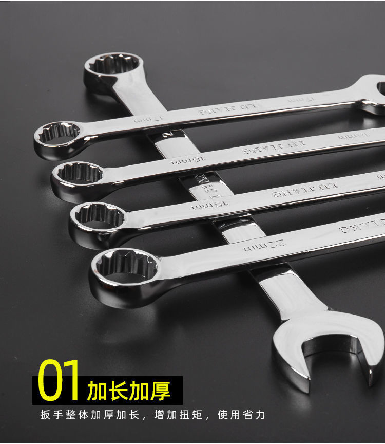 包装清单:1英迈 梅开两用扳手套装 梅花开口镜面 高硬防锈呆头扳子布 袋组套
