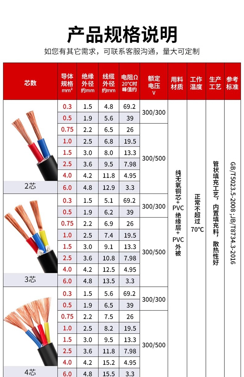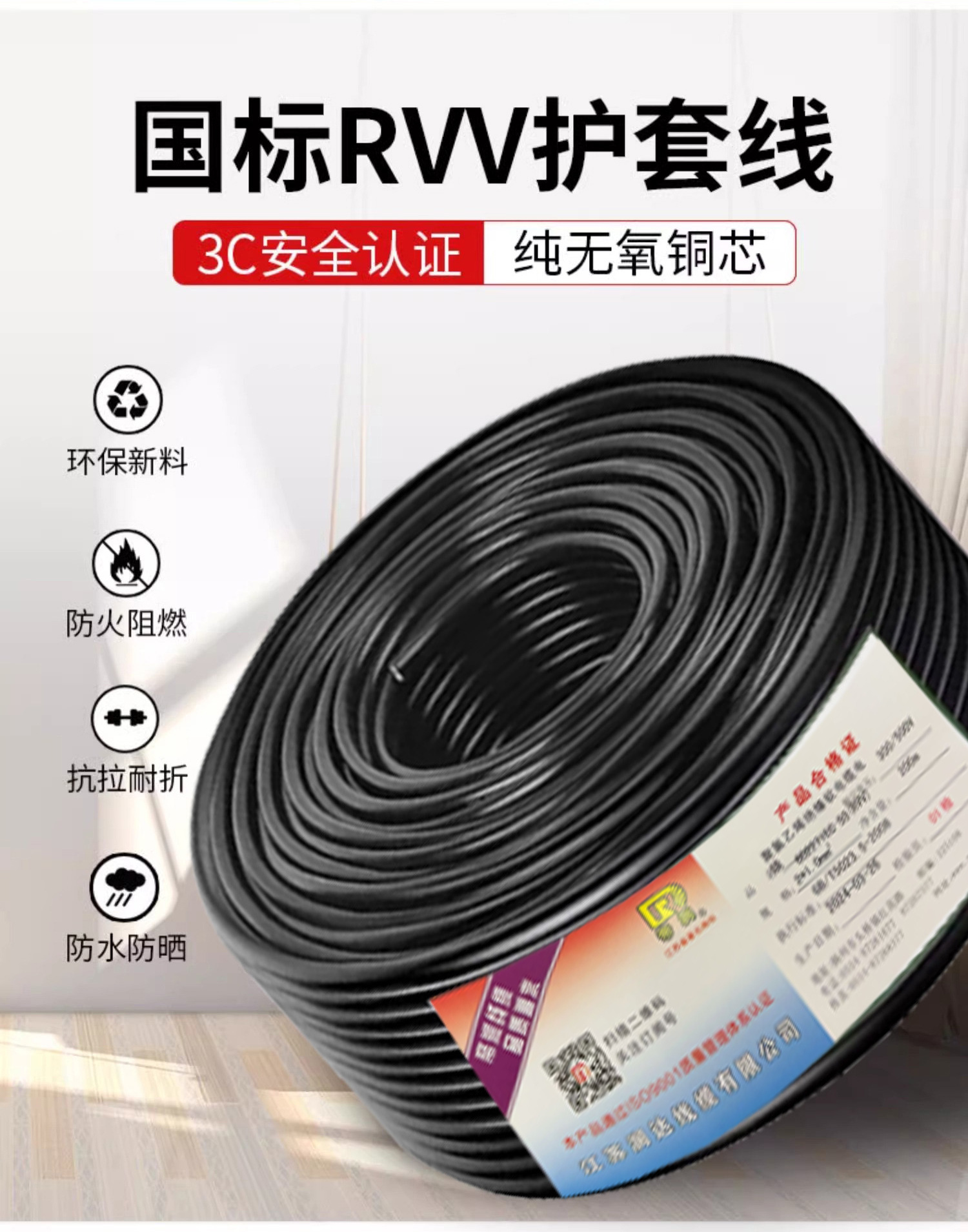 商品名称:中迈 国标RVV电线纯铜电源线 2芯软电缆线护套线信号控制线缆