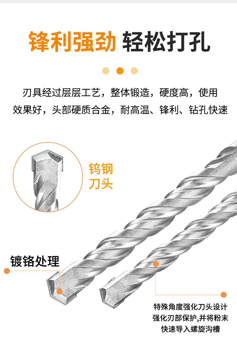 包装清单:1 东成 DongCheng 工业级圆柄冲击钻头电锤钻头 加长混凝土打孔