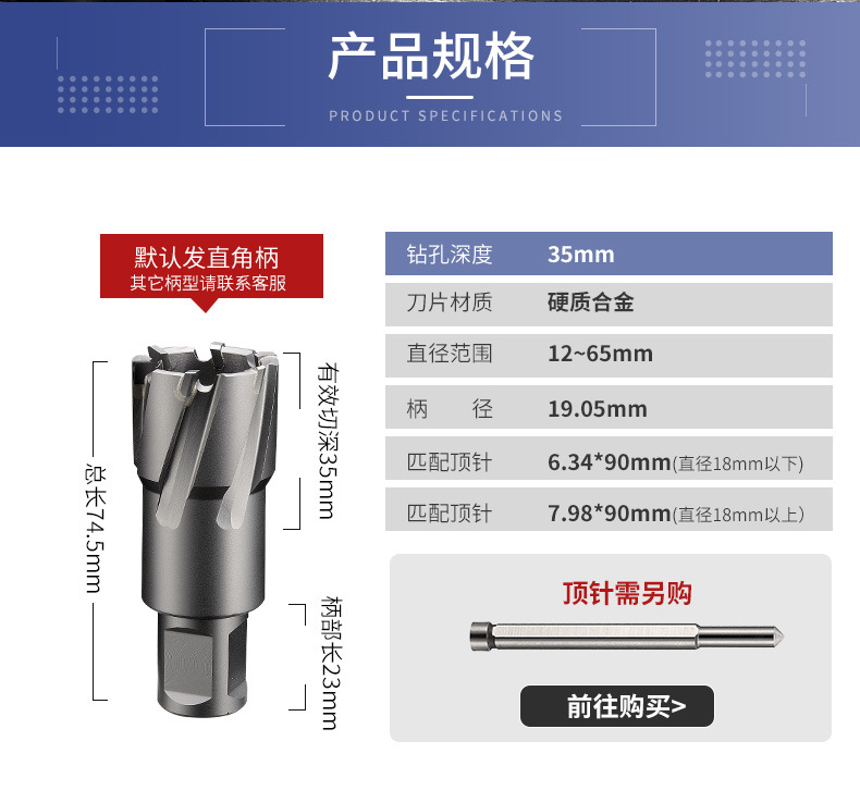 包装清单:1创恒CHTOOLS 直角柄钢板钻 深钢板钢构钻孔开孔器硬质合金空心钻头