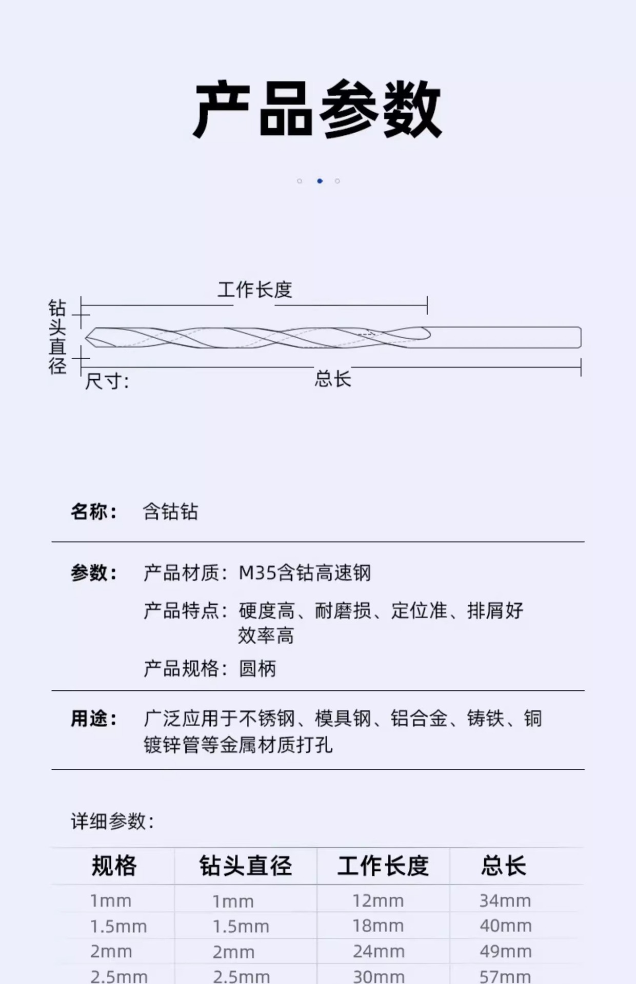 包装清单:1鸿盼盛 麻花钻头 不锈钢专用手电钻 打孔转头超硬金属钻头