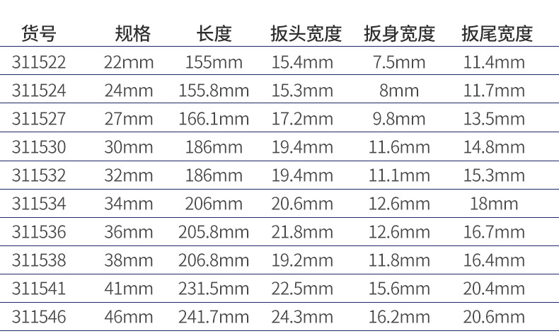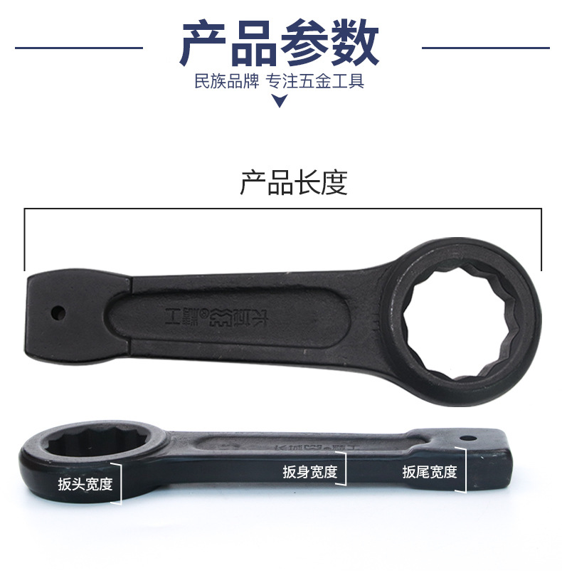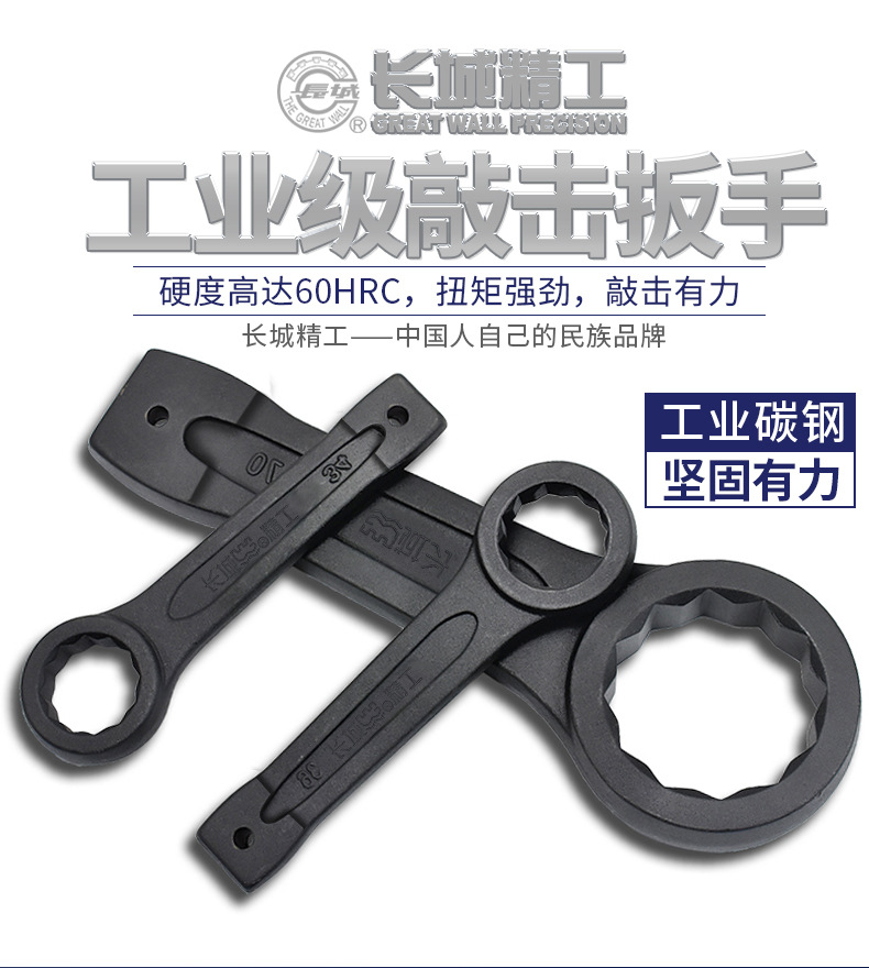 包装清单:1长城精工 重型敲击扳手直柄单头开口梅花扳手 24/30/32/36/41/46/50