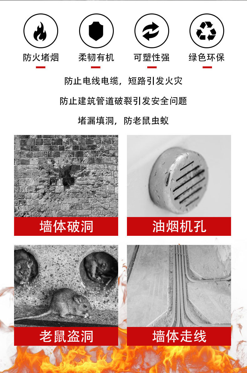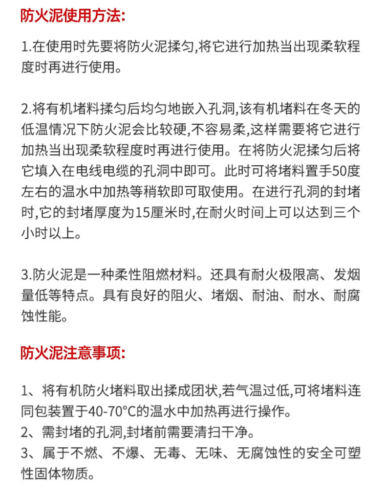 包装清单:1伟诚 防火泥耐高温封堵配电箱燃气热水器排烟管消防堵洞国标