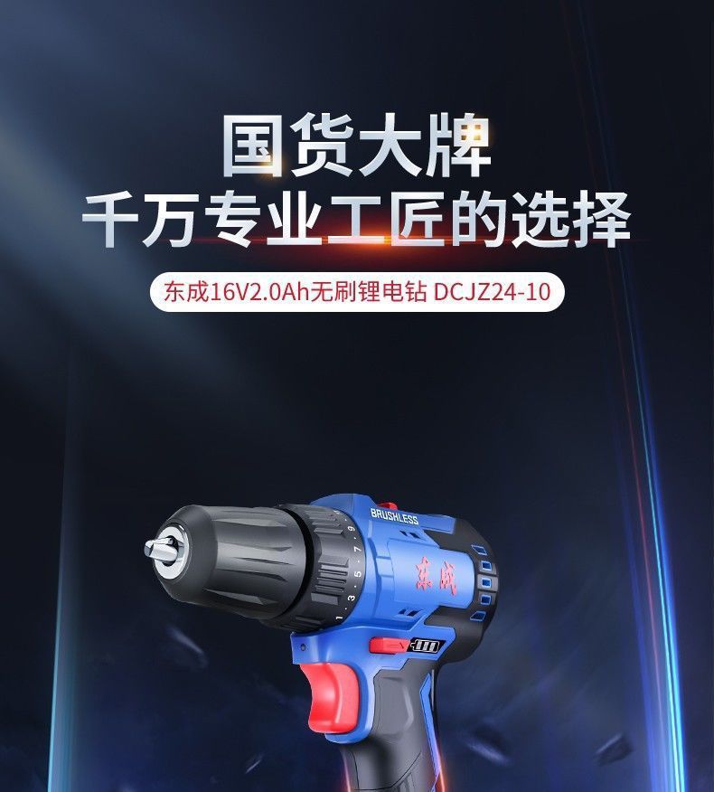 包装清单:1东成 DongCheng 充电手枪钻 锂电钻电动螺丝刀 DCJZ24-10E 16V/2.0Ah*2组