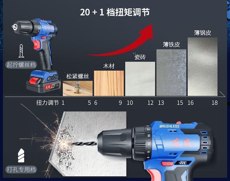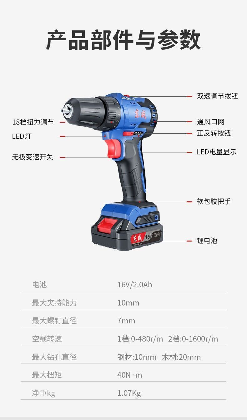 商品名称:东成 DongCheng 充电手枪钻 锂电钻电动螺丝刀 DCJZ24-10E 16V/2.0Ah*2组