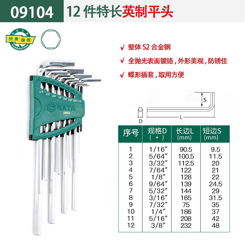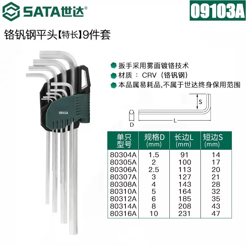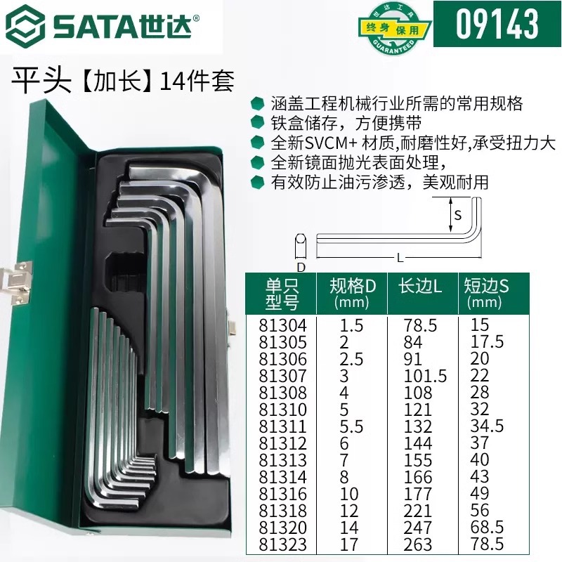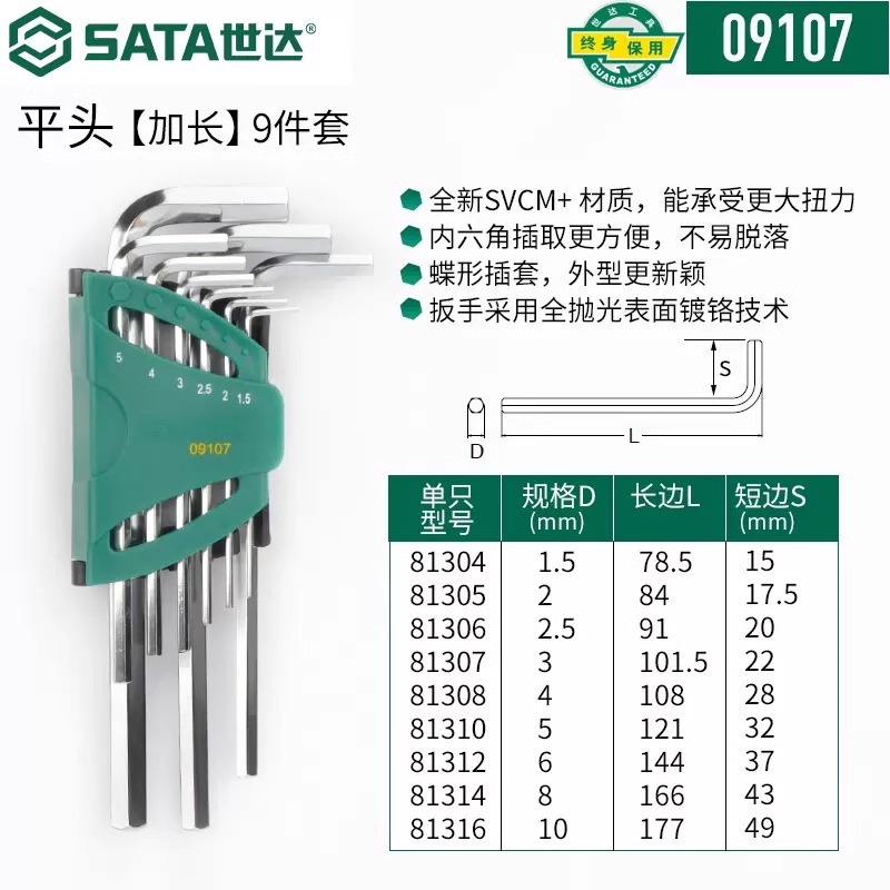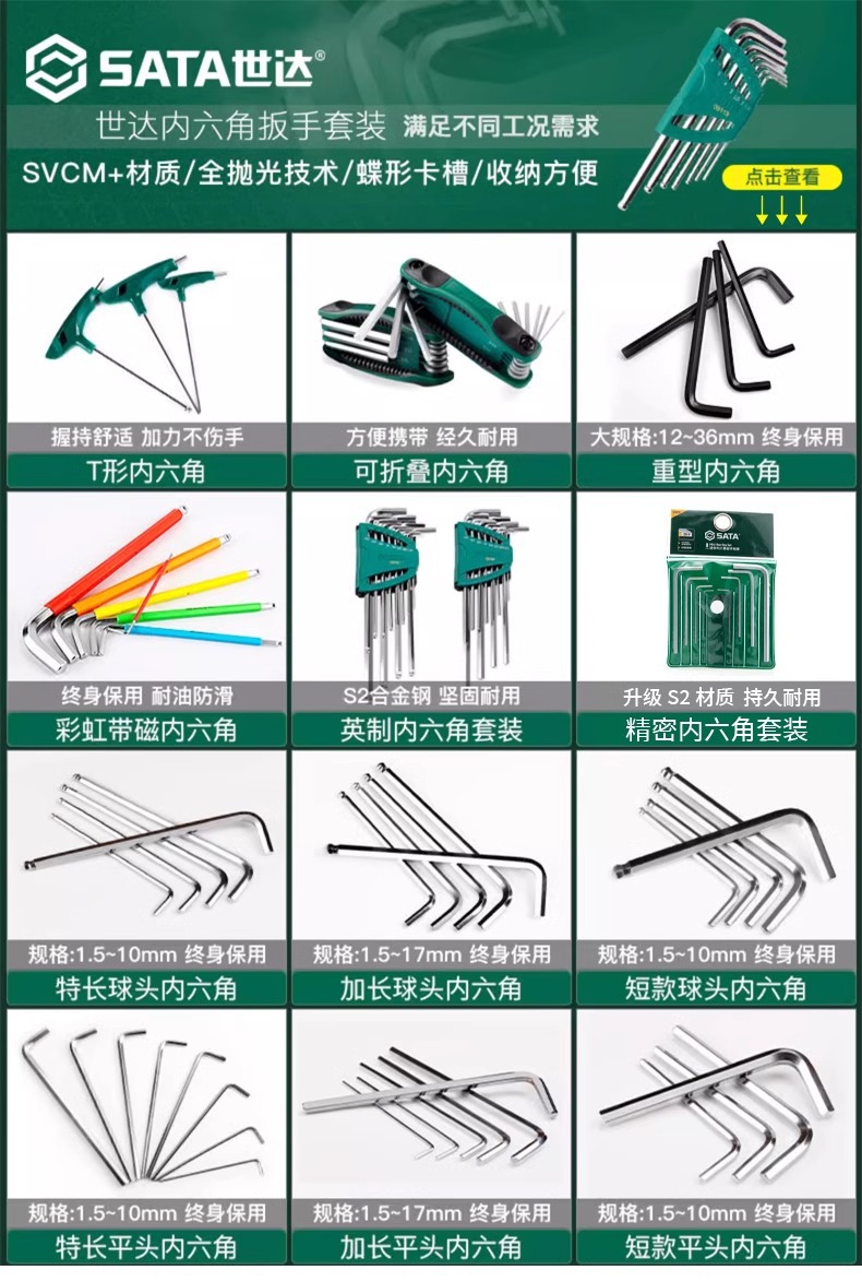 包装清单:1世达 内六角扳手套装 六角螺丝刀 六棱工具六角匙