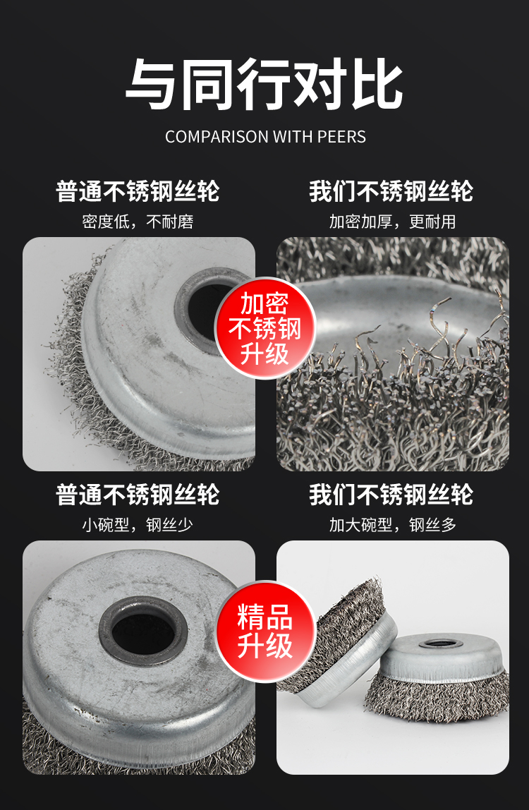 包装清单:1雷蒙不锈钢碗型钢丝轮125型/150型除锈 除毛刺 碗刷 打磨轮