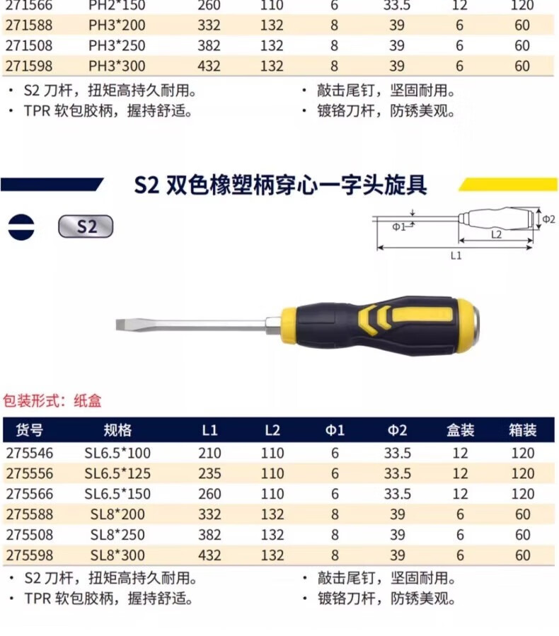 包装清单:1长城精工一字穿心螺丝刀穿心螺丝批一字可敲击改锥起子螺丝刀工业级改刀
