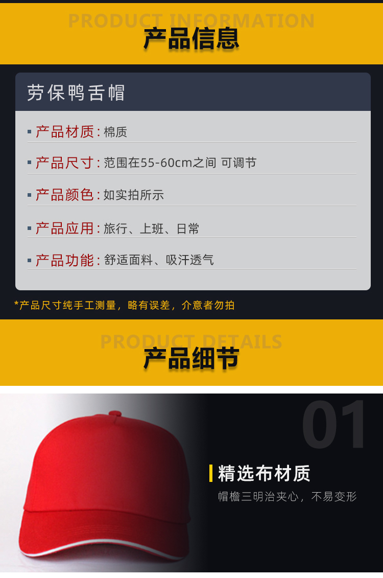 包装清单:1合恒工品 户外遮阳帽 棒球帽 网帽 渔夫帽多种颜色 均码