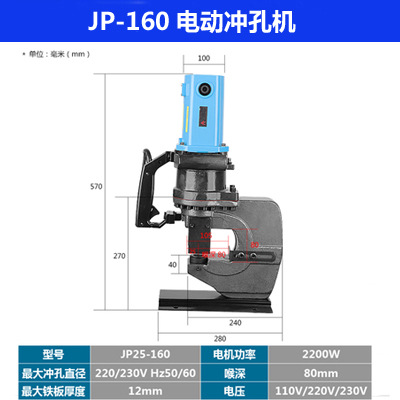 奔工 电动液压冲孔机 JP25-160 功率2200W 最大冲孔厚度12mm 喉深80mm 配模具Ф6Ф8Ф10Ф12Ф14Ф16Ф18