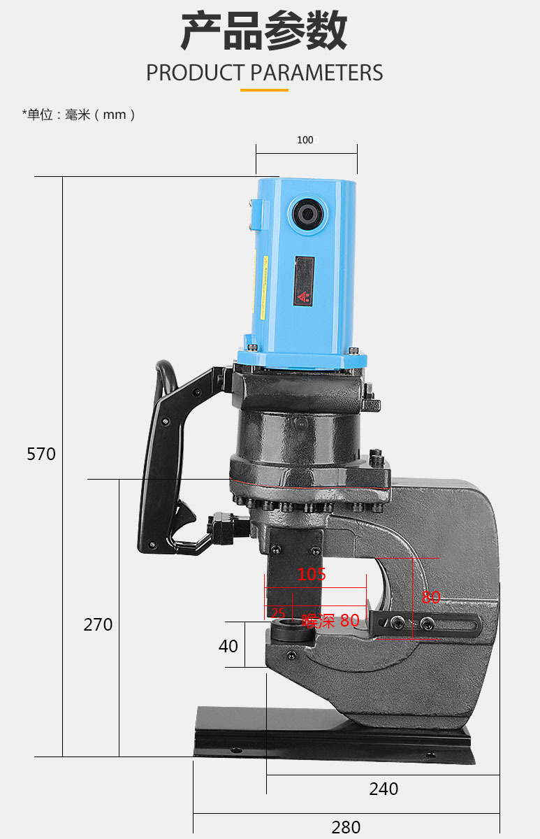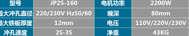 商品名称:奔工 电动液压冲孔机 JP25-160 功率2200W 最大冲孔厚度12mm 喉深80mm 配模具Ф6Ф8Ф10Ф12Ф14Ф16Ф18
