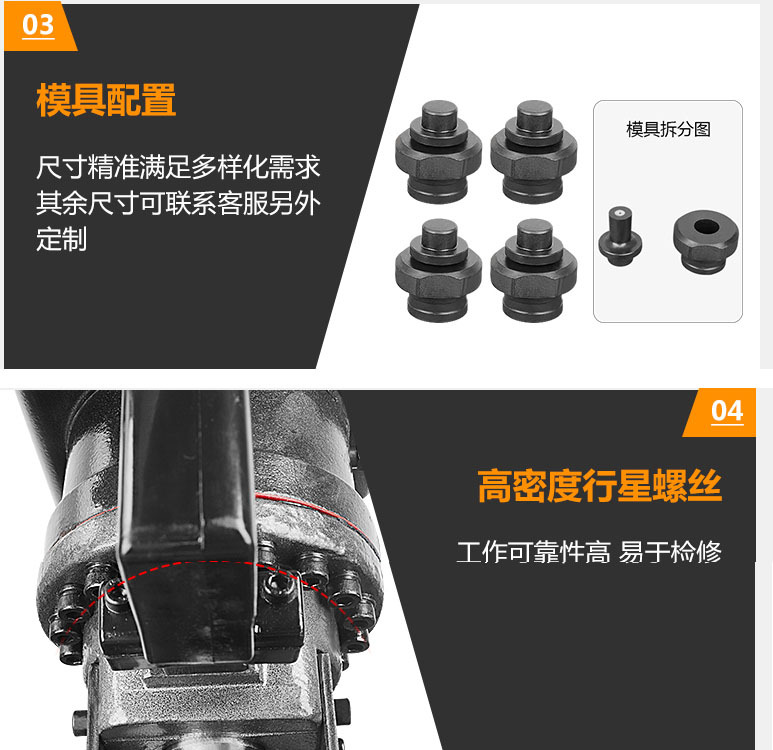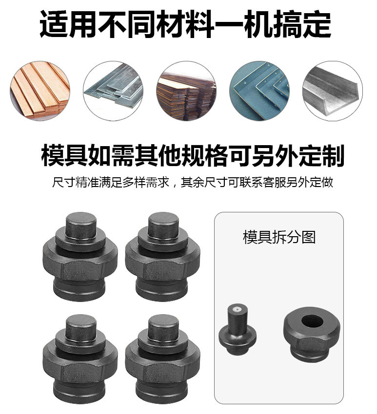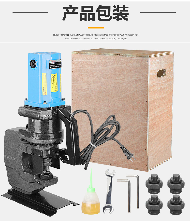 包装清单:1奔工 电动液压冲孔机 JP25-160 功率2200W 最大冲孔厚度12mm 喉深80mm 配模具Ф6Ф8Ф10Ф12Ф14Ф16Ф18