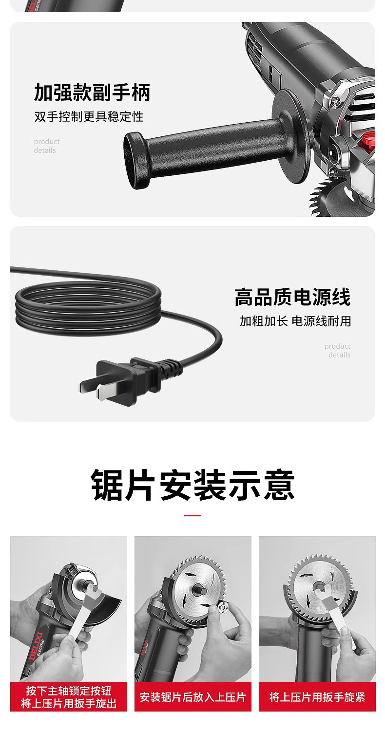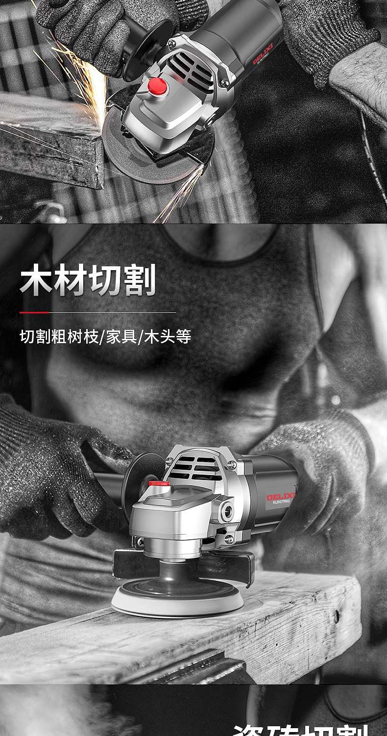 商品名称:德力西 角磨机 多功能切割机 家用手砂轮大功率手磨抛光打磨机磨光机