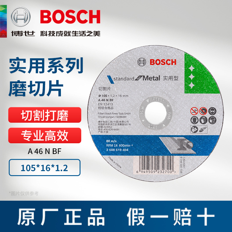博世 BOSCH 实用系列磨切片 金属切片105*16*1.2mm 金属砂轮切割片