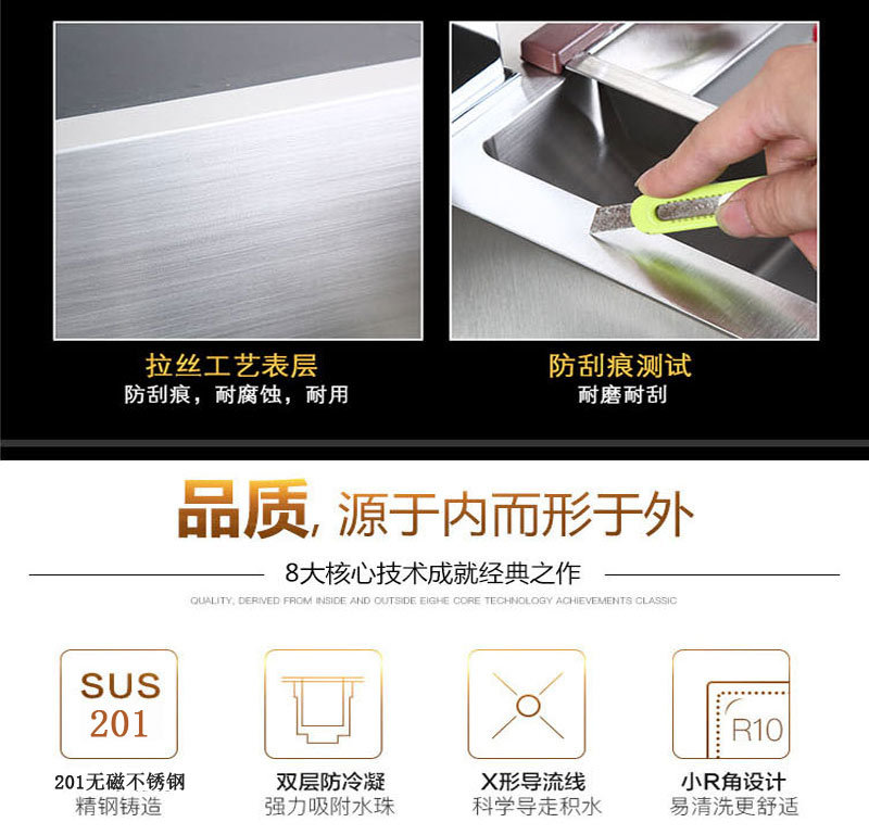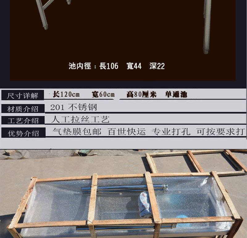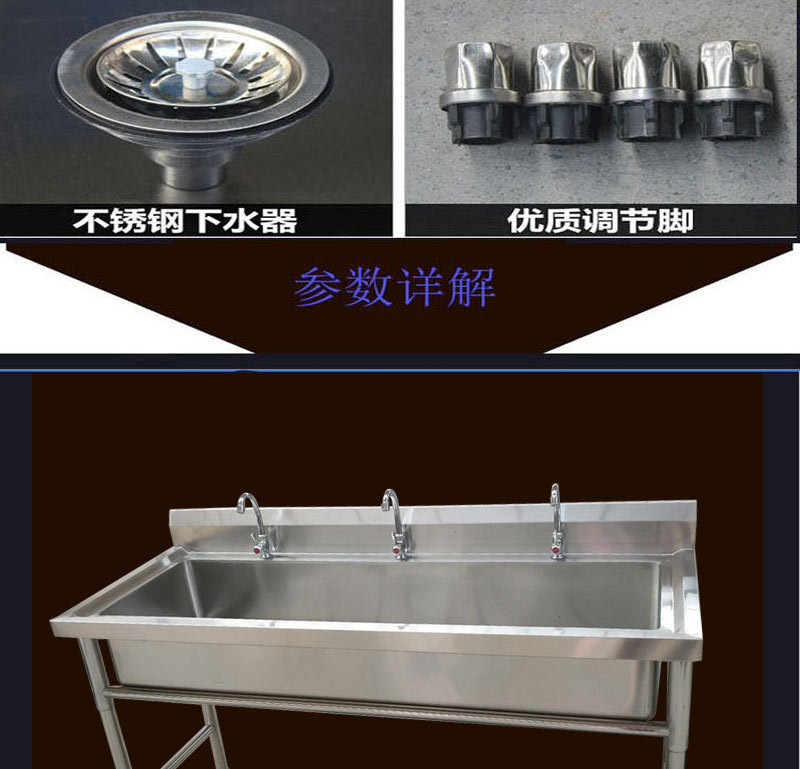 包装清单:1汇泉 商用304不锈钢通池大长条水槽 幼儿园工地食堂洗手池加长加大特厚