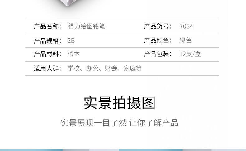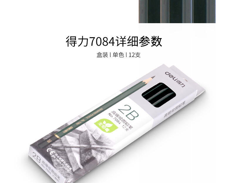 包装清单:1得力 deli 铅笔 货号7084 绘图铅笔2B铅笔