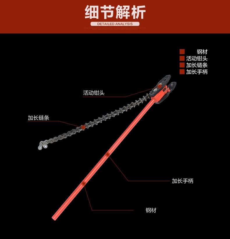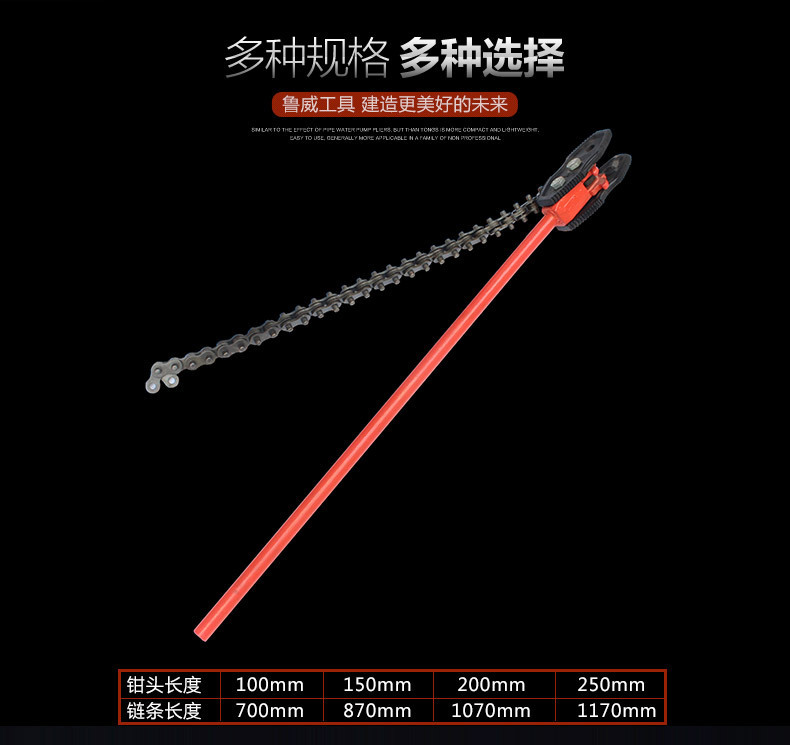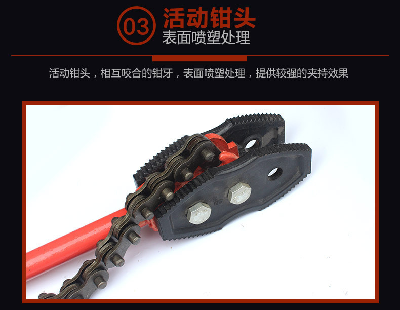包装清单:1英迈 钢链条管钳 防油污金属快速打孔链条 管子钳