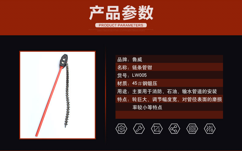 商品名称:英迈 钢链条管钳 防油污金属快速打孔链条 管子钳