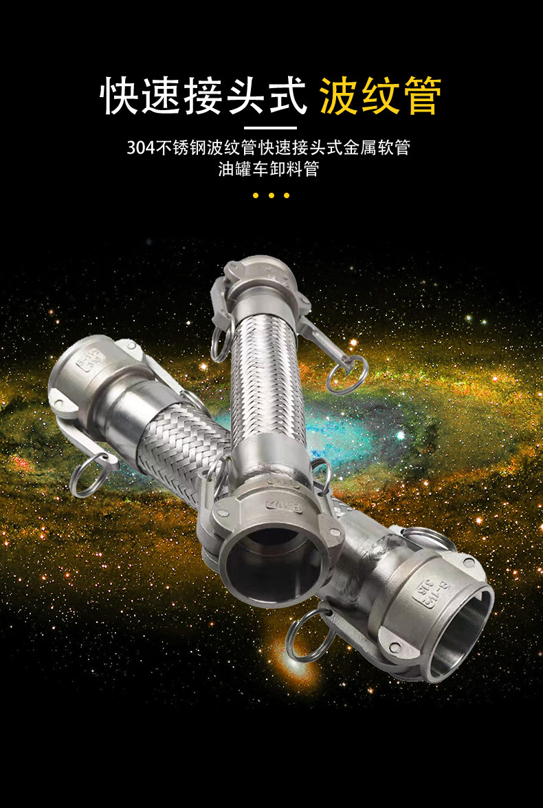 包装清单:1合恒工品 HHGP 不锈钢金属软管快速接头 不锈钢 1/2" L=50cm