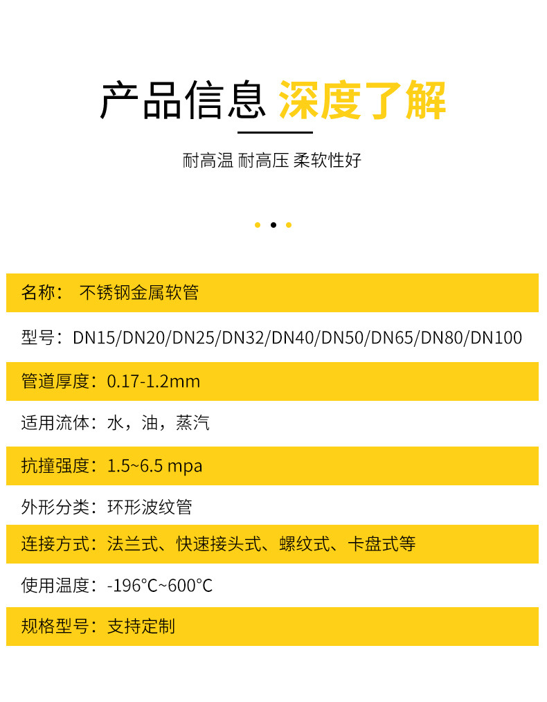 商品名称:合恒工品 HHGP 不锈钢金属软管快速接头 不锈钢 1/2" L=50cm