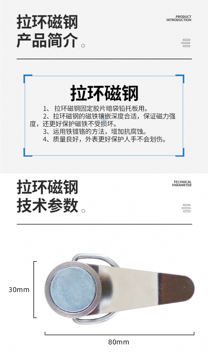 商品名称:恒硕 拉环磁钢吸力大不锈钢拉环 磁钢强力固定暗袋
