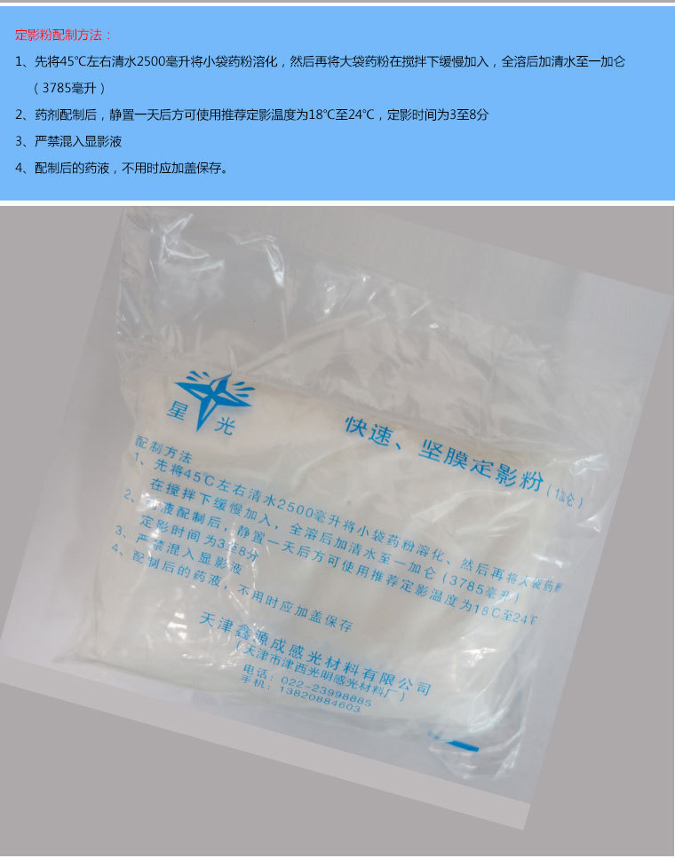 包装清单:1天津星光工业用 显影粉 x射线探伤底片冲洗显定影粉