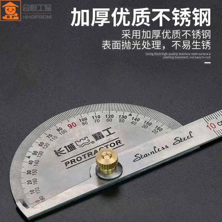 长城精工多用金属量角尺加厚不锈钢材质防锈耐磨多功能角度尺高精度工业