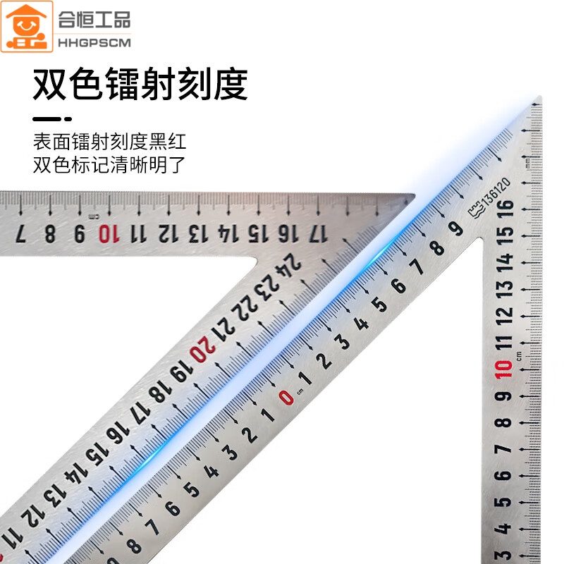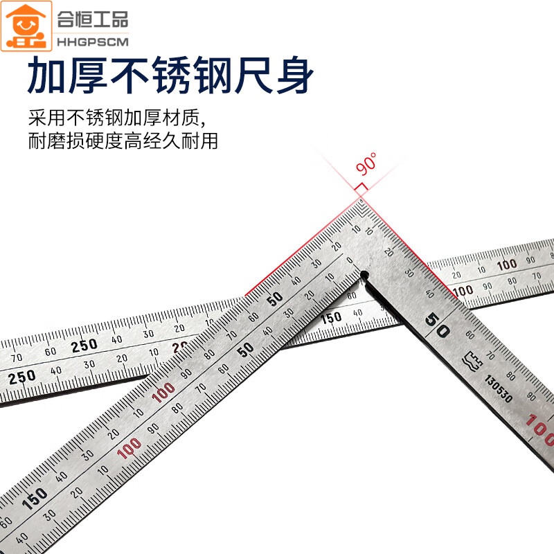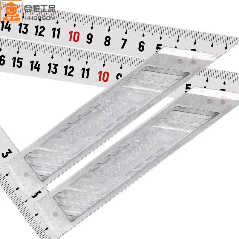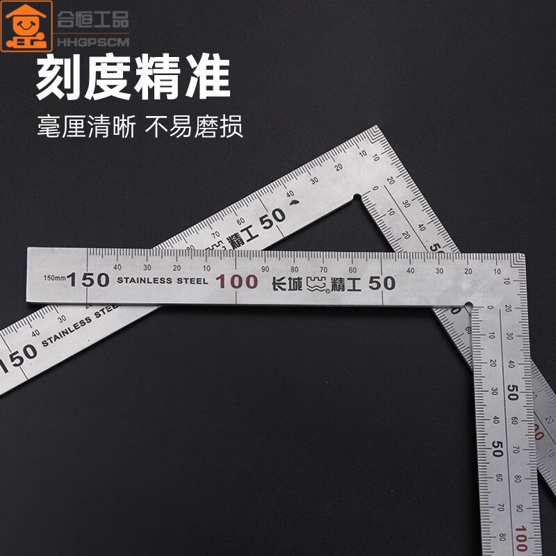 长城精工锌合金座不锈钢角尺加厚不锈钢尺体双面大字描红读数清晰方便