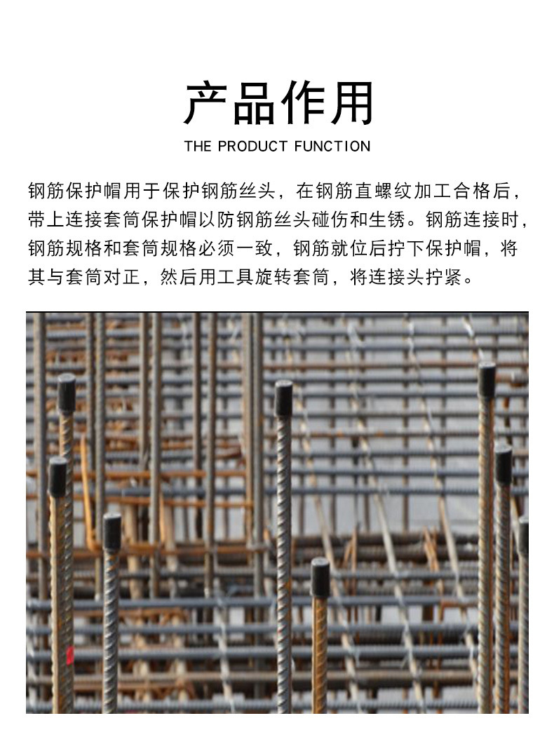 包装清单:1凯泽 钢筋保护帽丝头 护帽防锈螺纹套 筒钢筋帽塑料丝扣