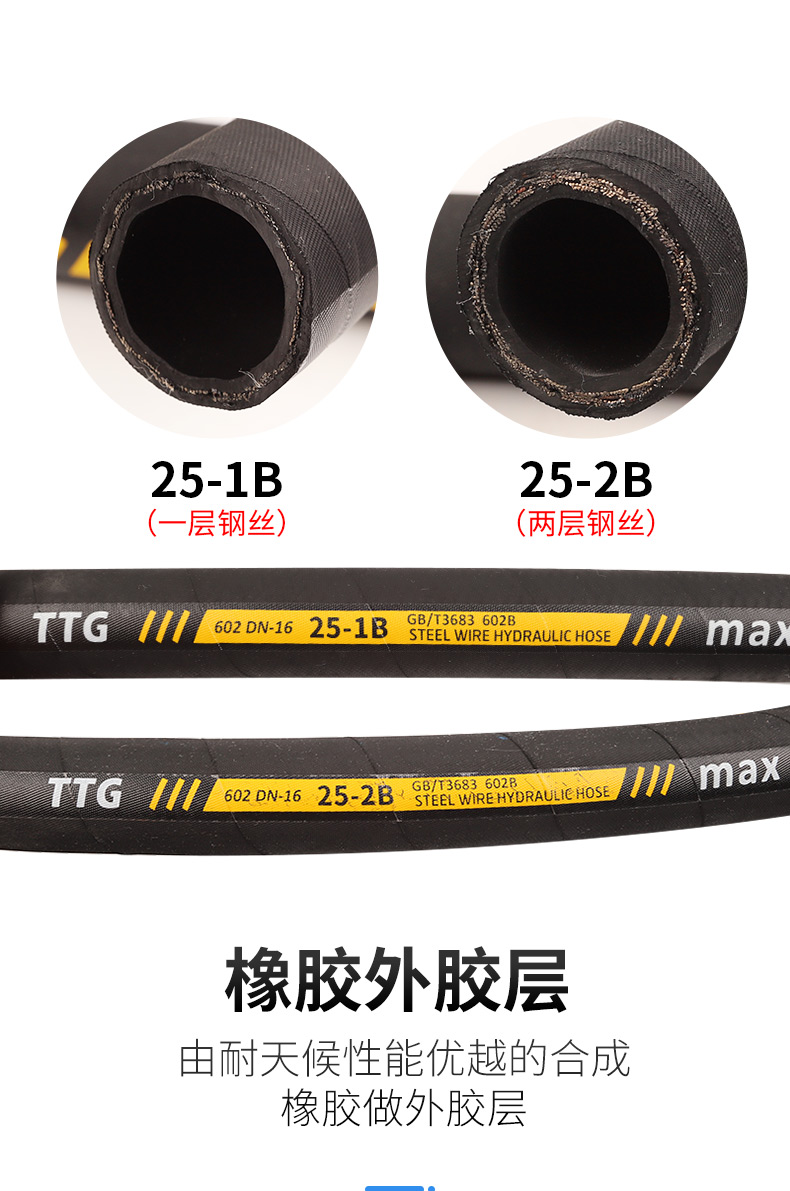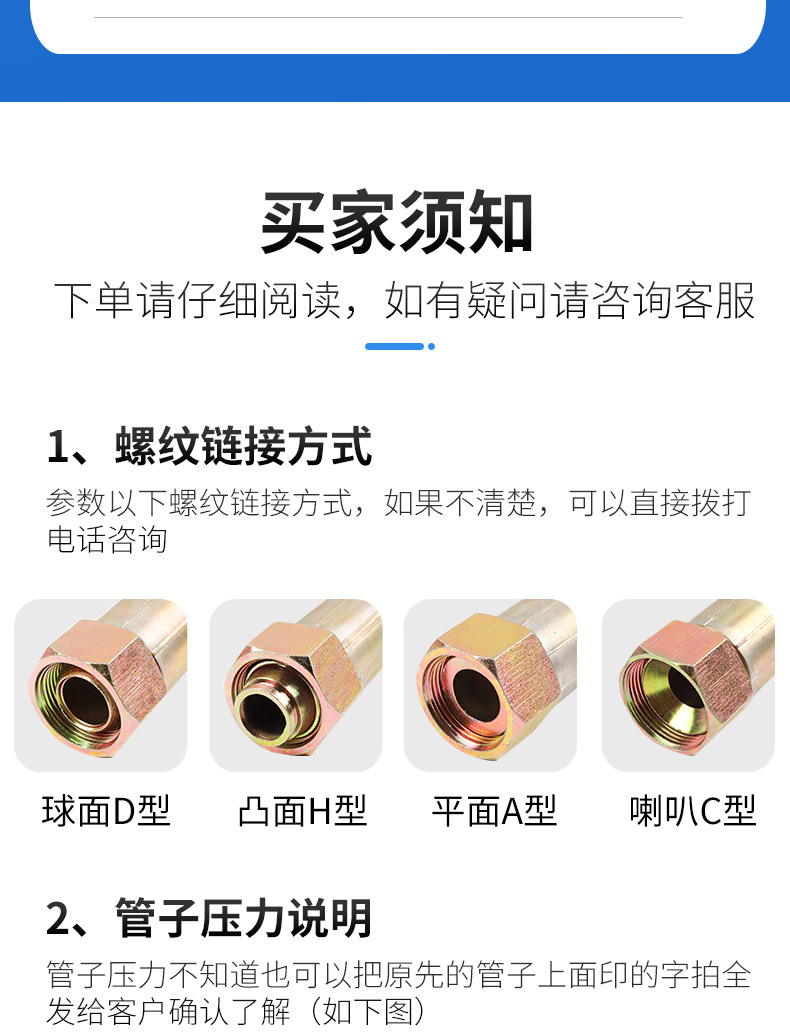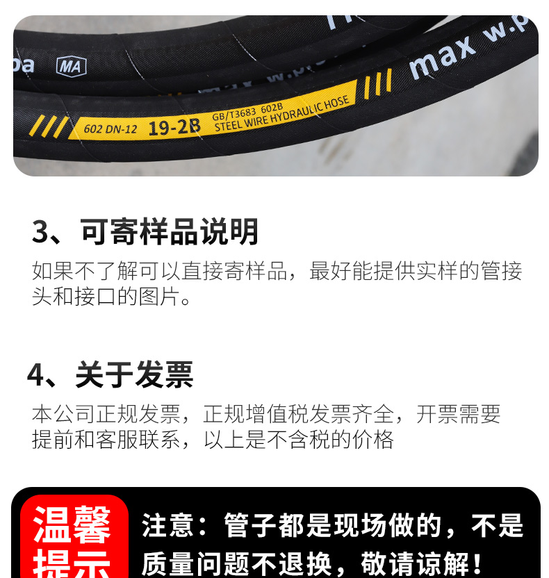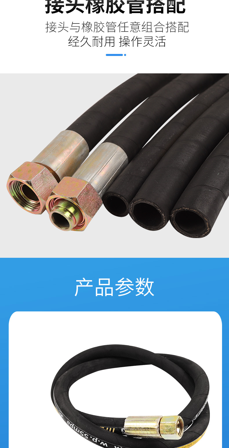 包装清单:1高川 高压油管总成钢丝编织液压胶管 耐高温高压蒸汽橡胶软管