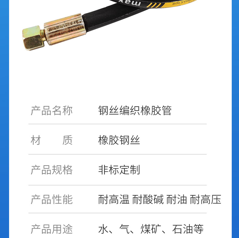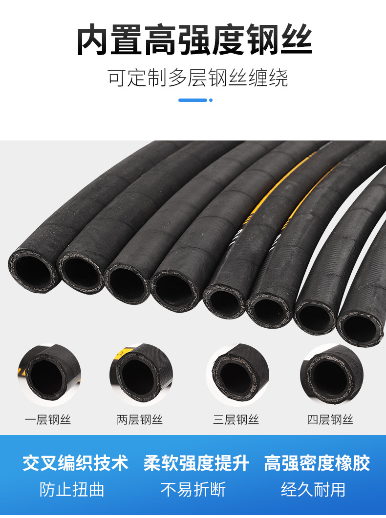 商品名称:高川 高压油管总成钢丝编织液压胶管 耐高温高压蒸汽橡胶软管