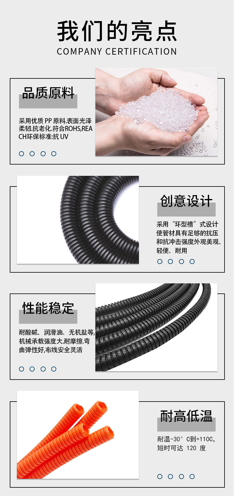 包装清单:1 合恒工品 PA波纹管阻燃塑料 黑色线束阻燃波纹管 可裁切