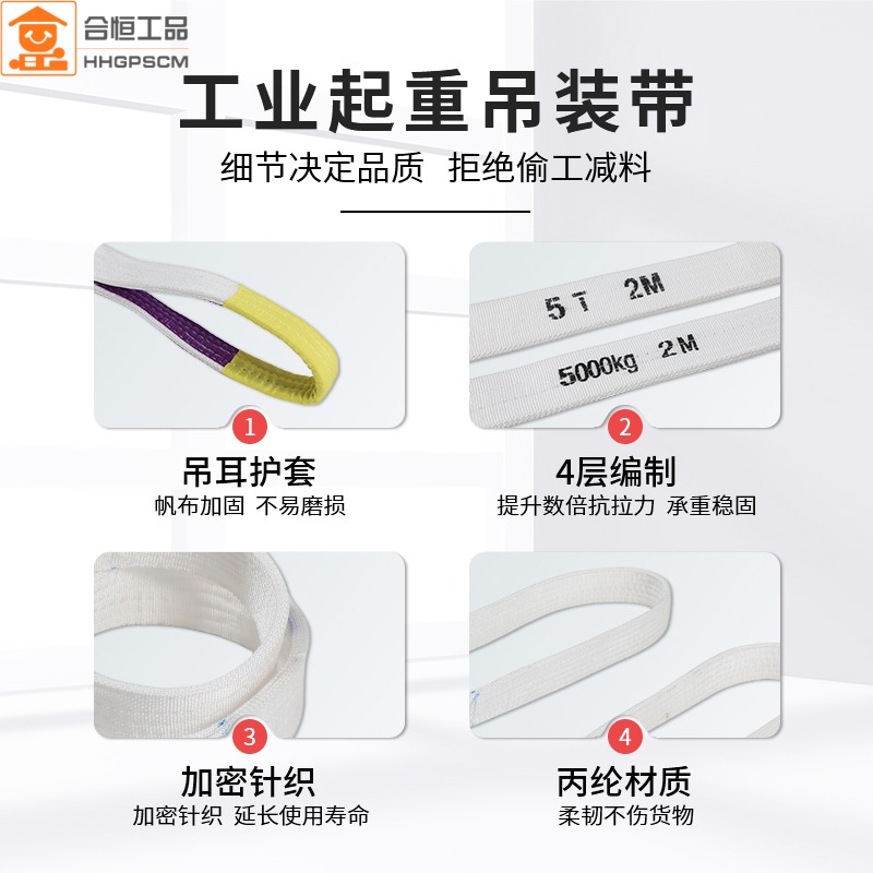 大雁白色扁平吊装带工业吊装带国标吊带起重丙纶行车拖车绳 丙纶行车拖车绳