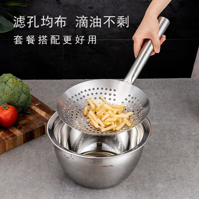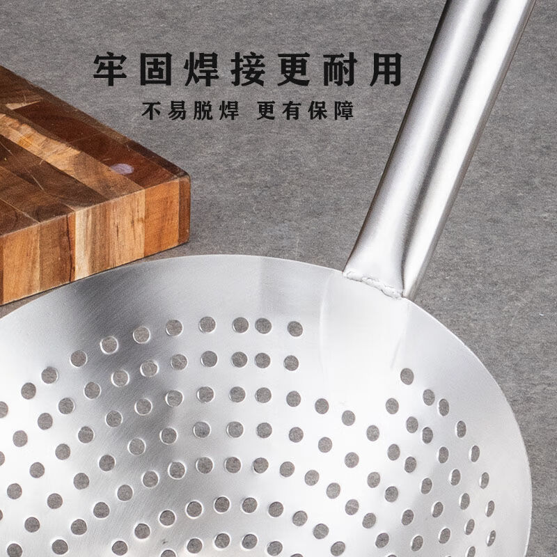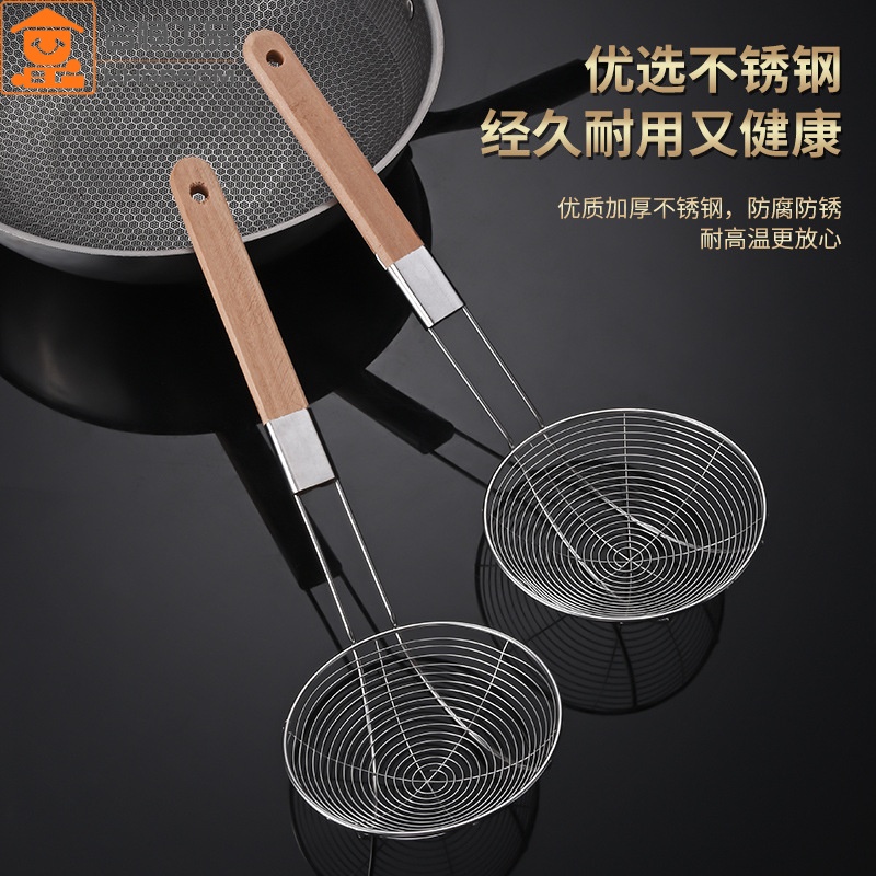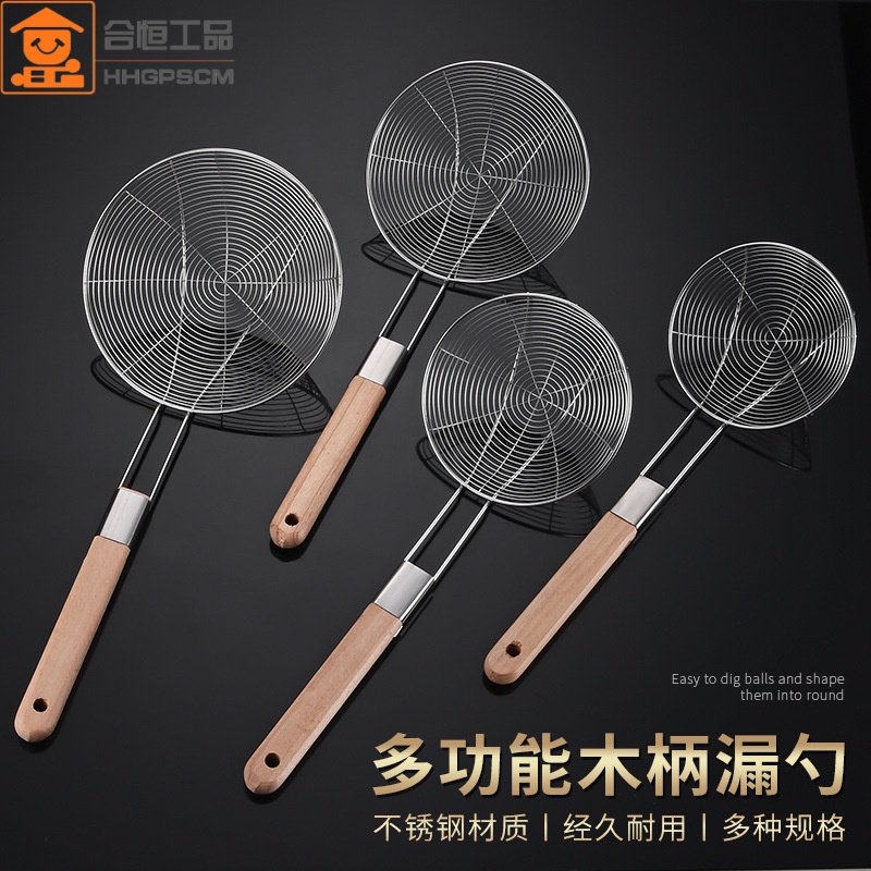 合恒工品笊篱不锈钢漏勺木柄加长漏勺过滤网笊篱捞面勺厨房商用捞篱大炸勺线漏