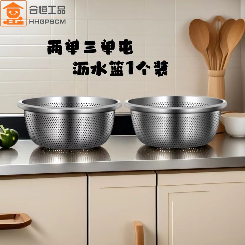 合恒工品漏盆洗菜盆特厚不锈钢沥水篮加厚商用家用不锈钢洗米筛
