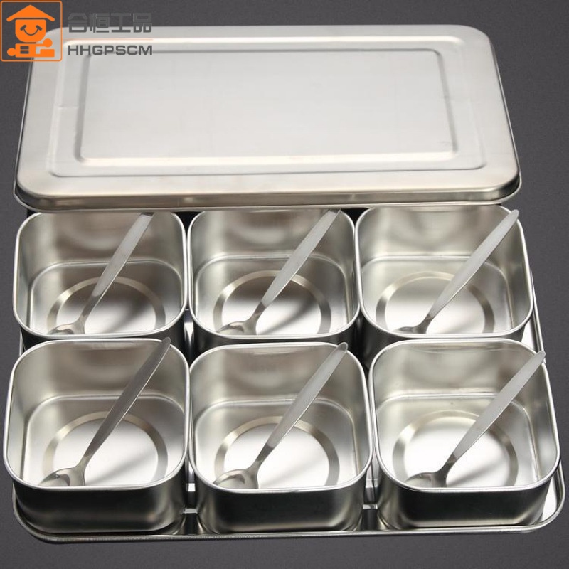 合恒工品调料盒不锈钢方形6盒套装调味罐佐料留样盒