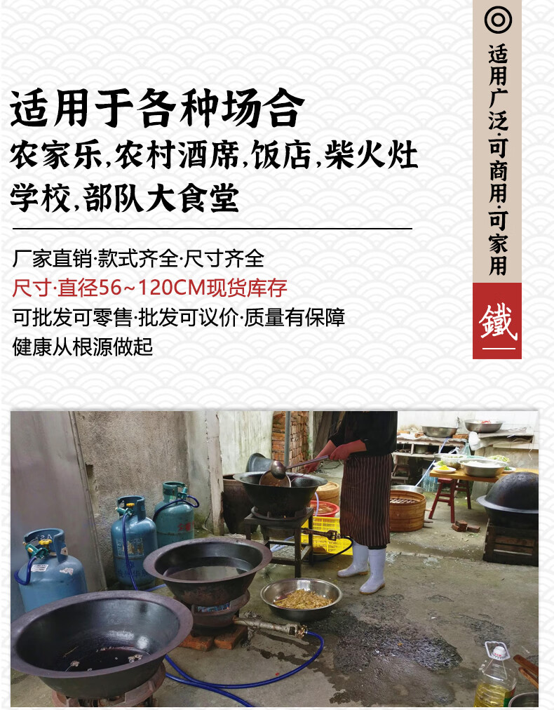 包装清单:1合恒工品大铁锅直径φ80CM 生铁铸造 直边柴火灶酒店食堂反边锅