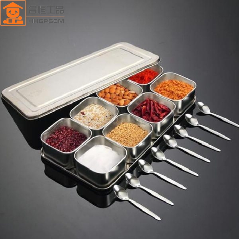 合恒工品调料盒不锈钢方形6盒套装调味罐佐料留样盒