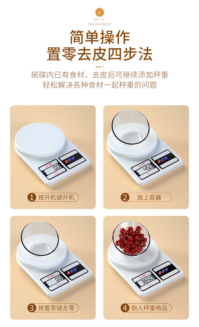 包装清单:1合恒工品电子克称高精度厨房秤电子秤 家用烘焙称重器精准克称小型食物秤称克数