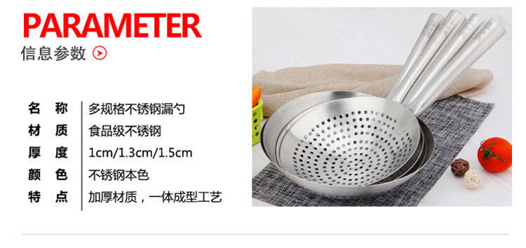 包装清单:1合恒工品漏勺不锈钢勺子过滤网麻辣烫火锅捞饺子家用密网笊篱厨房用品