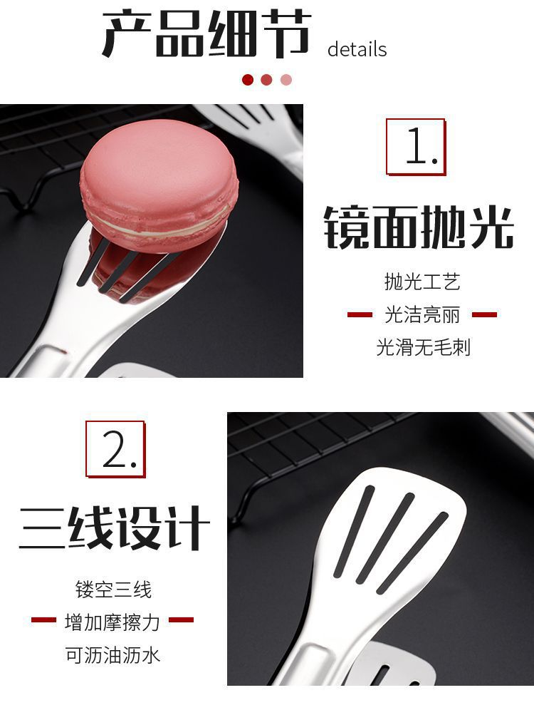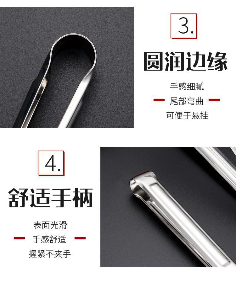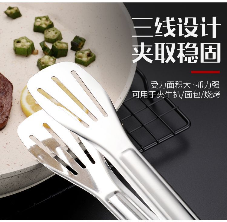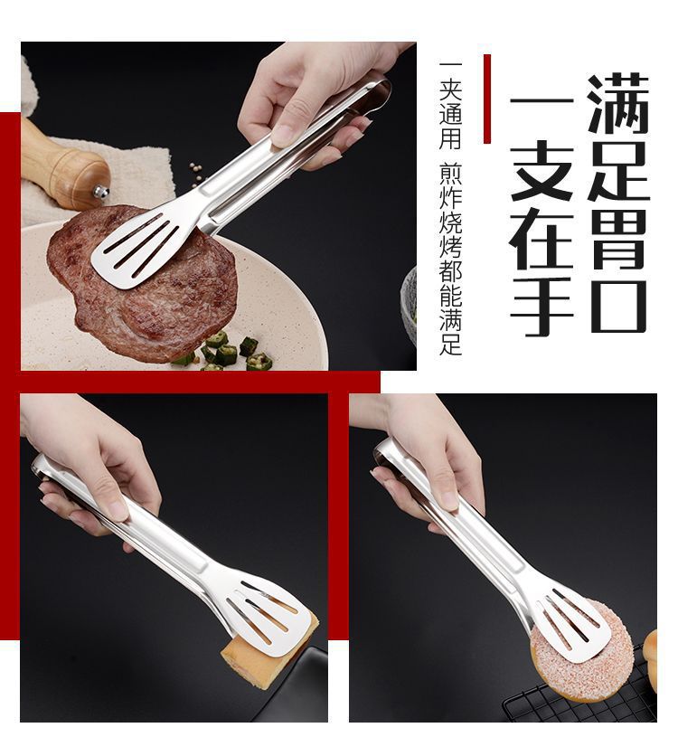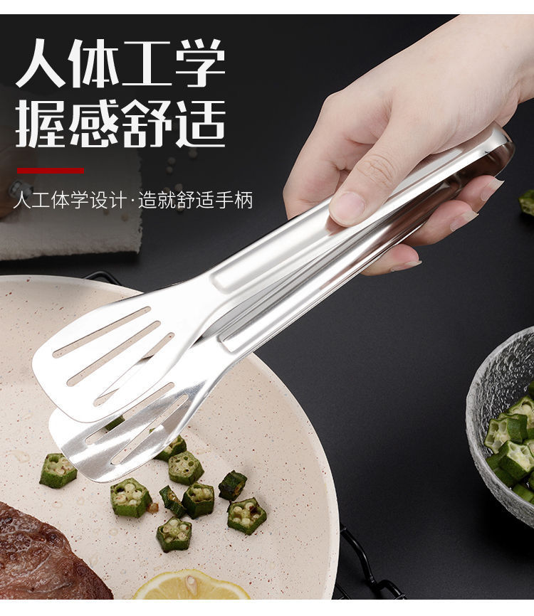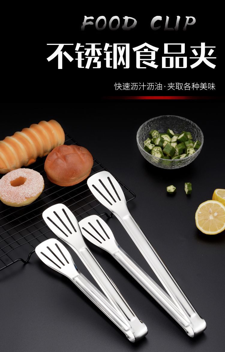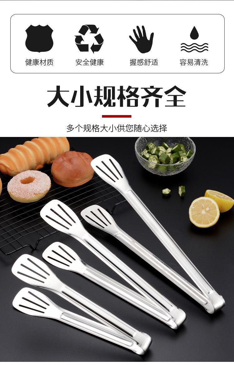 包装清单:3合恒工品食品夹子9寸 长22.5cm 不锈钢 加厚不锈钢食品夹子烧烤夹烤肉夹