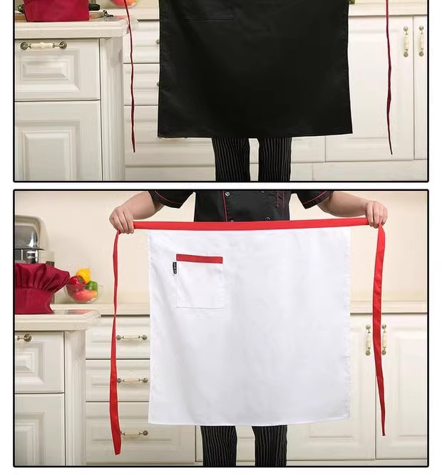 商品名称:合恒工品厨师围裙系绳款 白色 涤纶+聚酯纤维半截厨房厨师半身