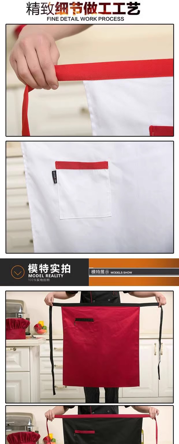 包装清单:5合恒工品厨师围裙系绳款 白色 涤纶+聚酯纤维半截厨房厨师半身