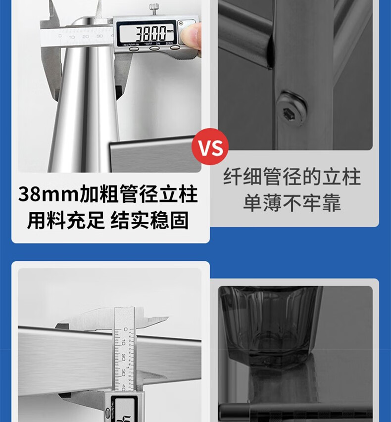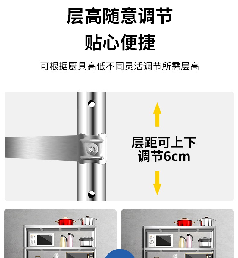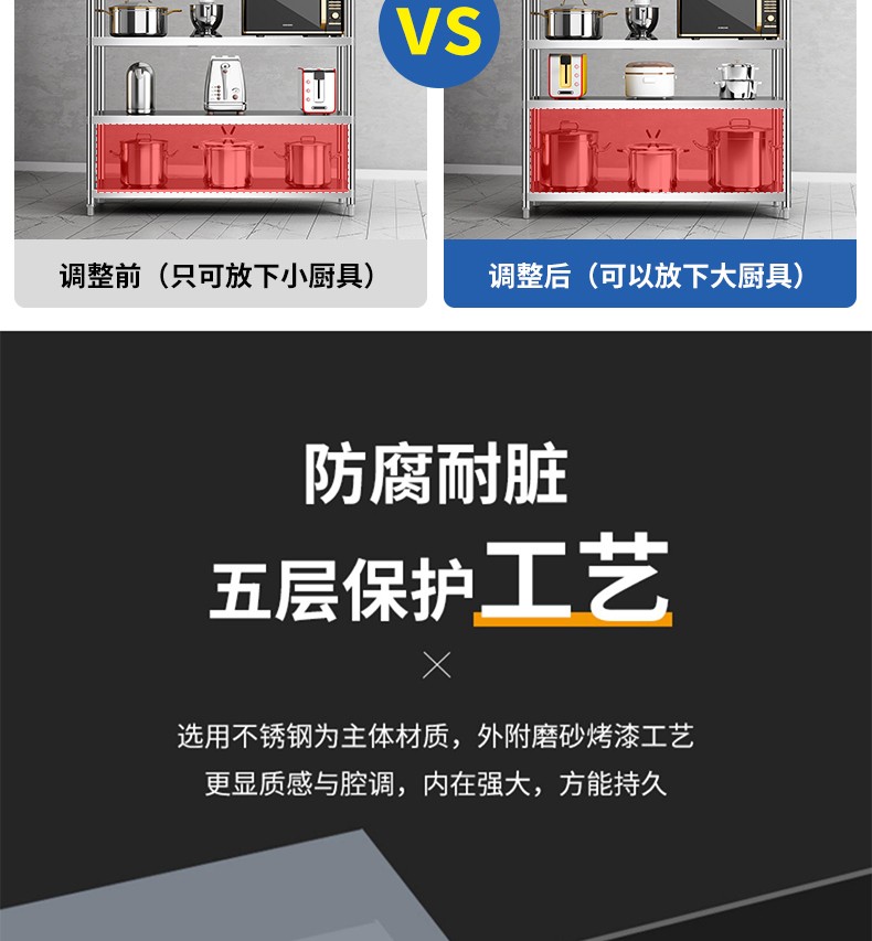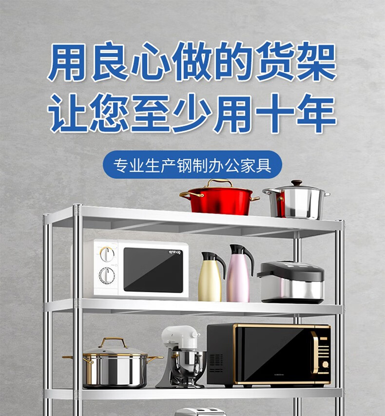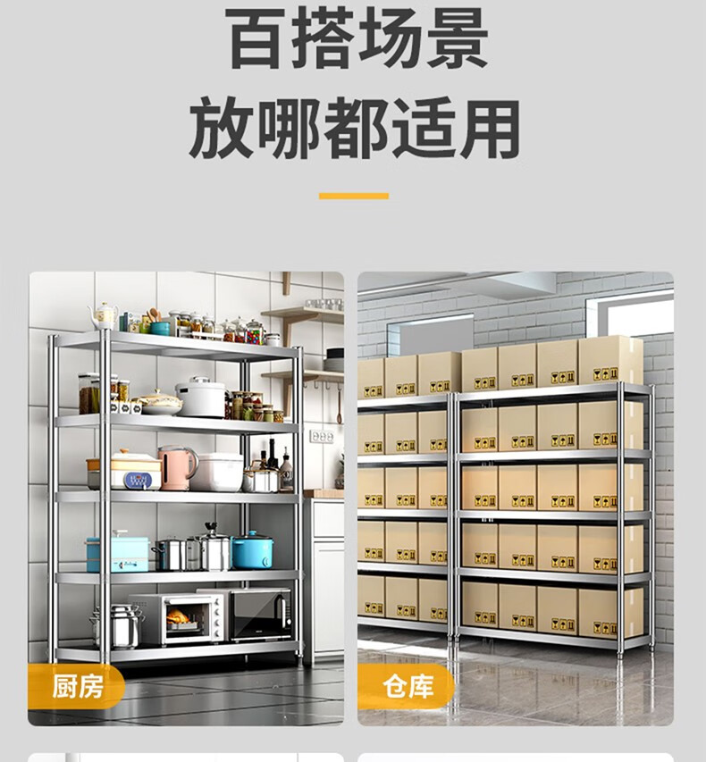 包装清单:1合恒工品不锈钢货架置物架不锈钢货架家用层架厨房收纳架落地多层架子储物架