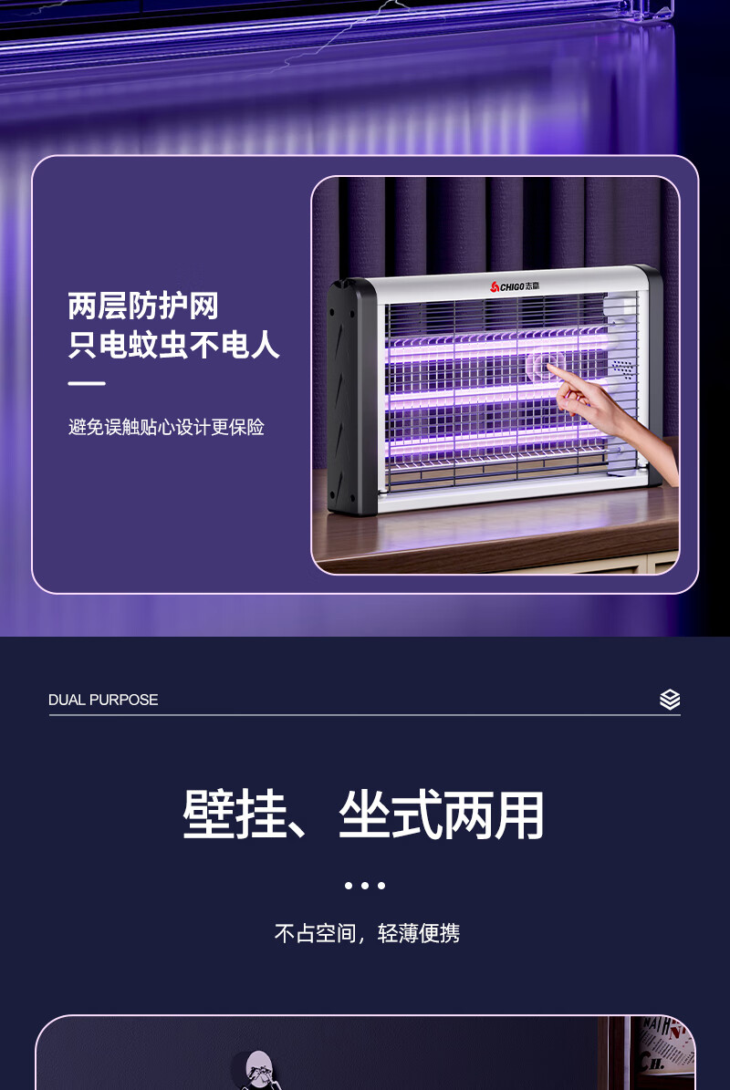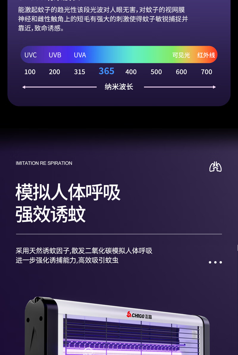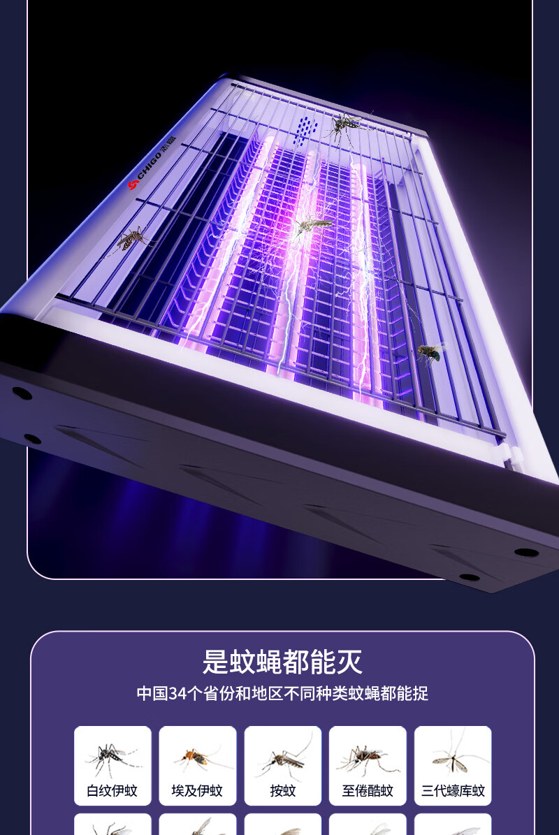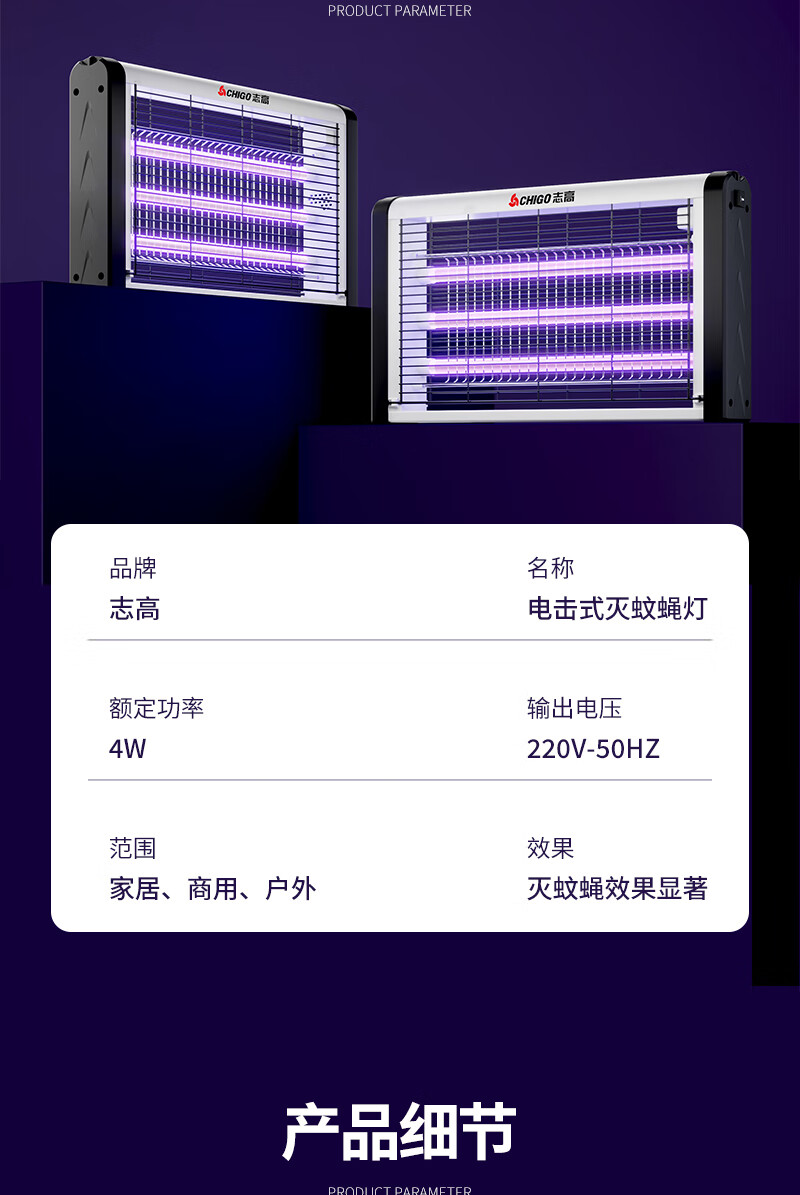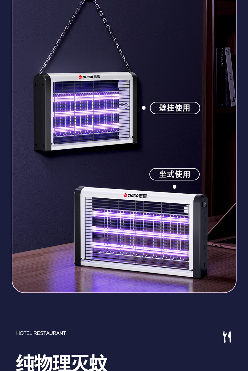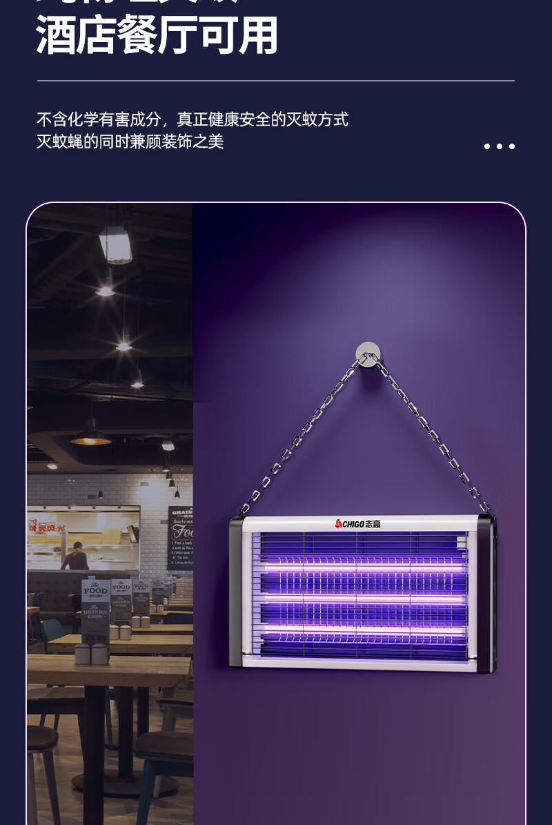 包装清单:1志高灭蝇灯8W 60cm*40cm 蓝光灭蚊灯灭蝇灯商用家用苍蝇捕捉器室内餐厅驱蚊灯诱捉电蚊子