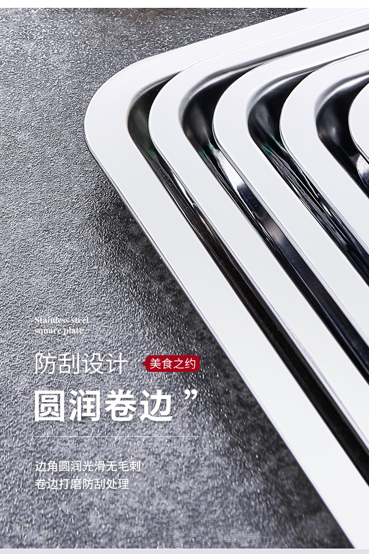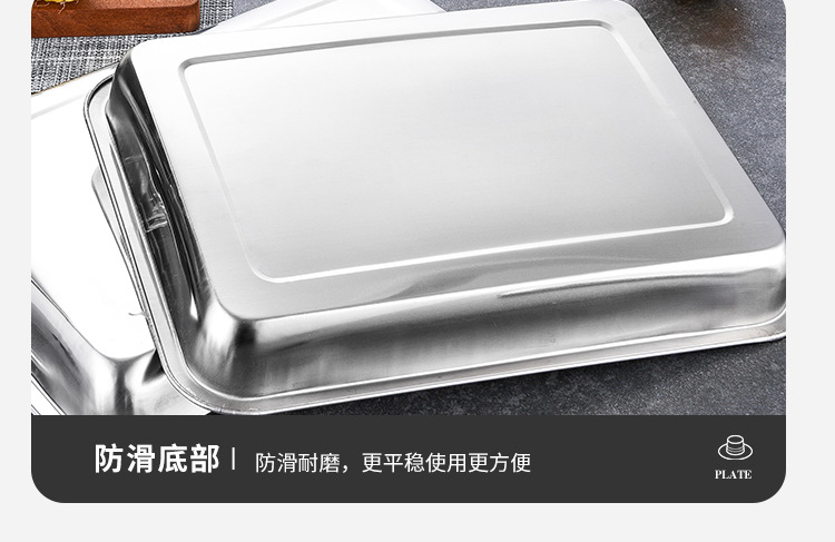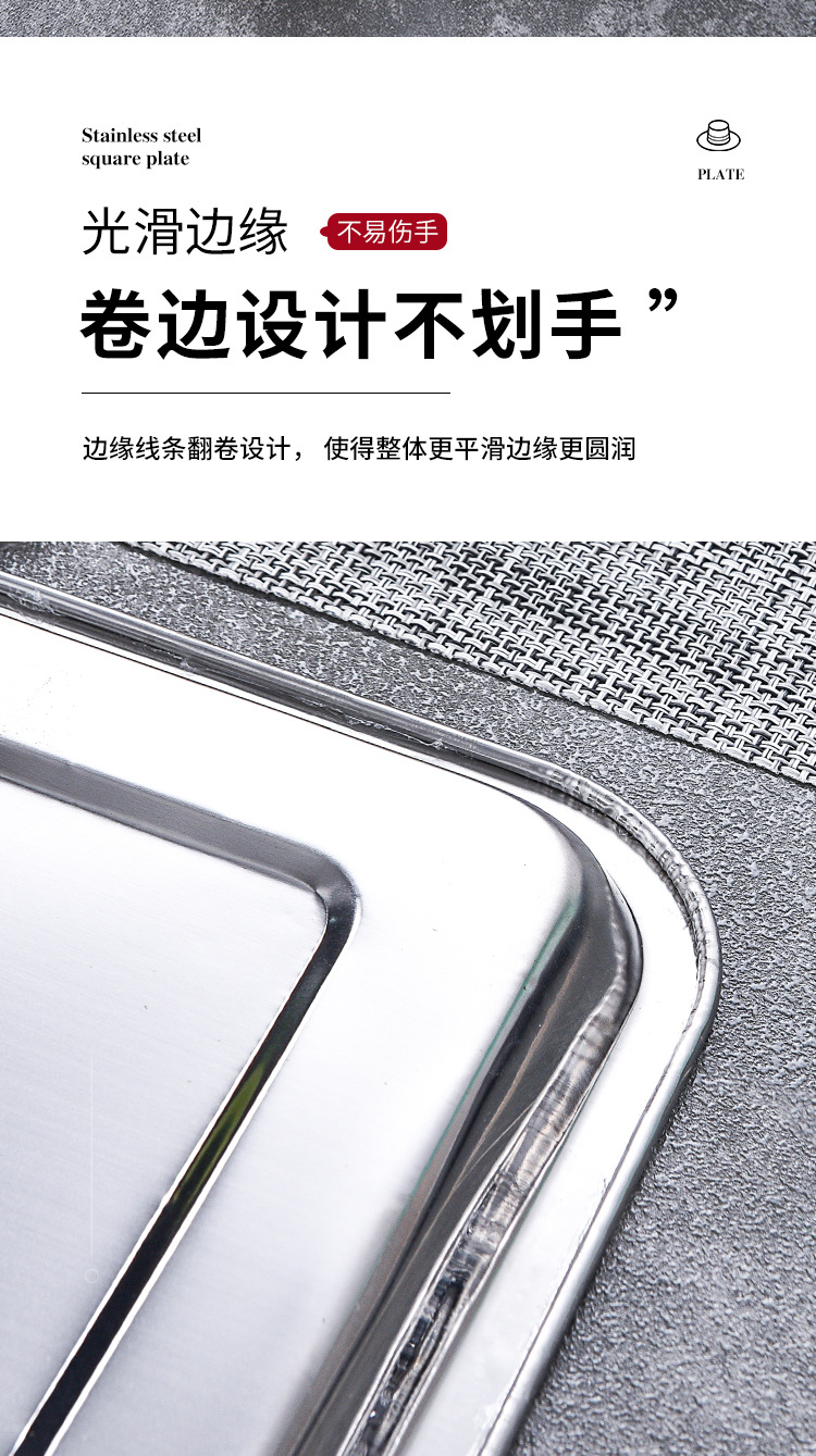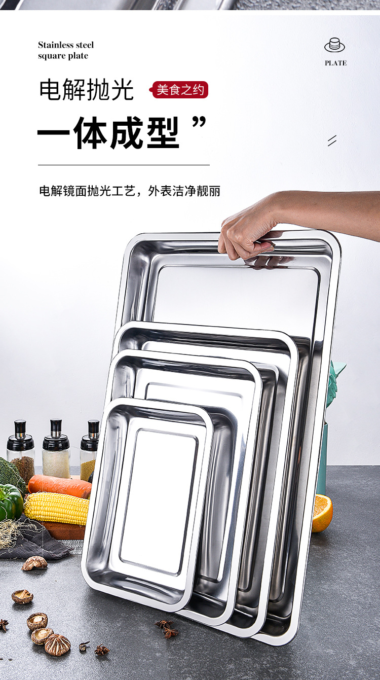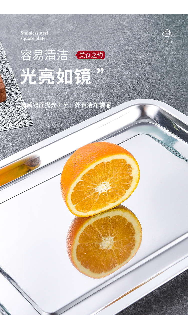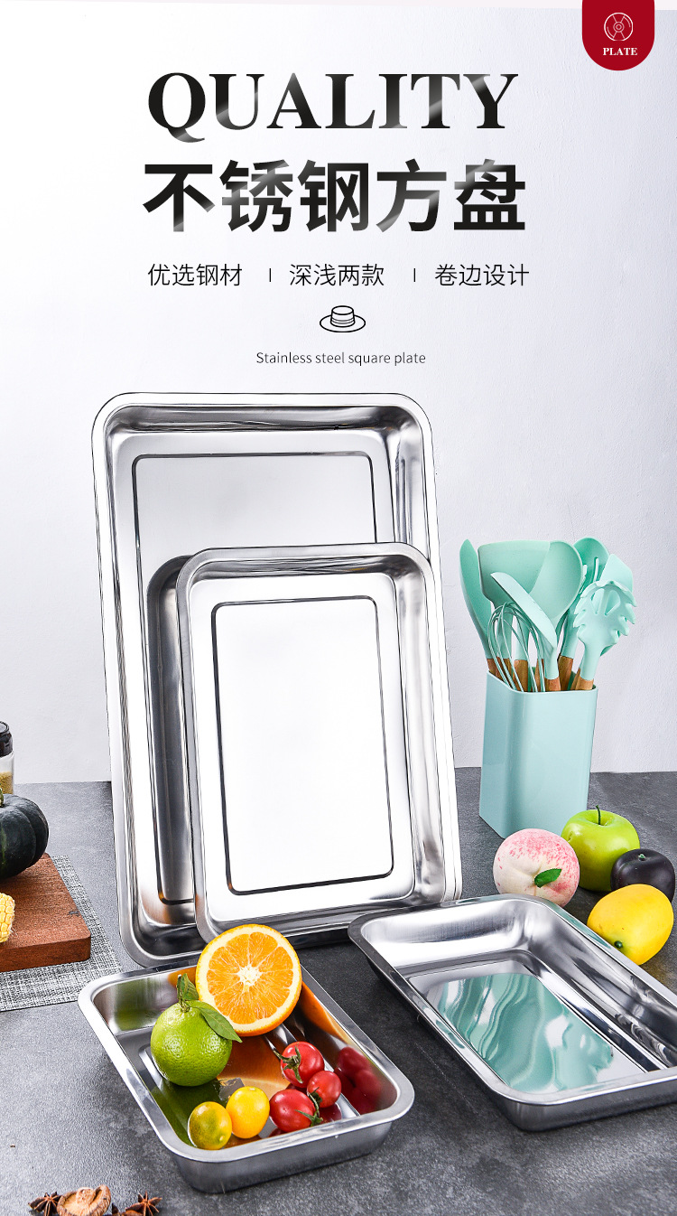 包装清单:1合恒工品 不锈钢方盘 蒸柜蒸车托盘 点菜柜备菜盘 烧烤店烤鱼小龙虾盘方形