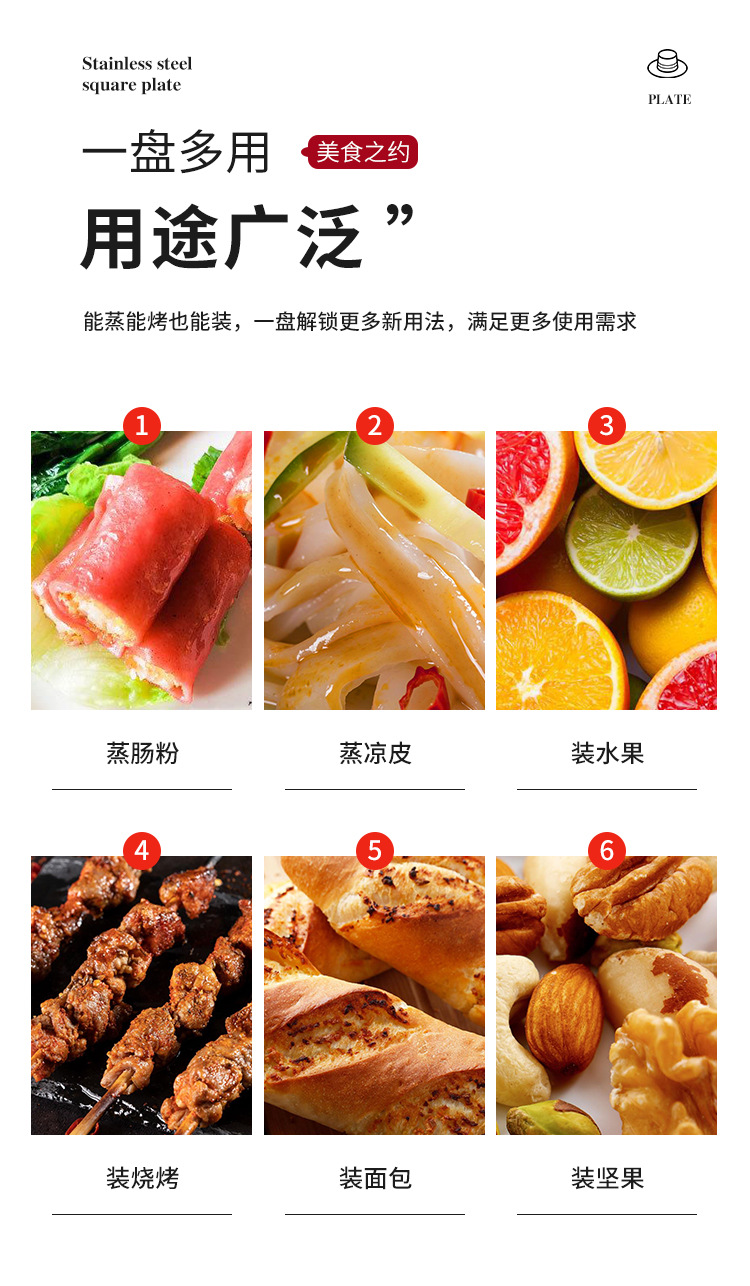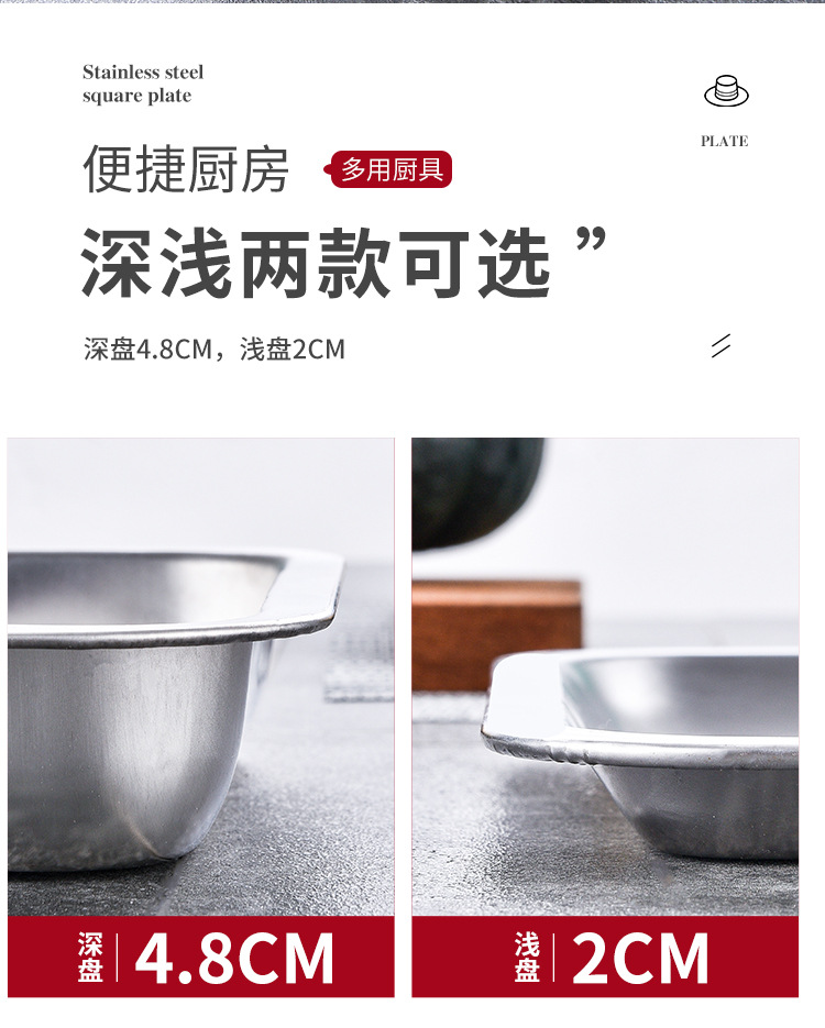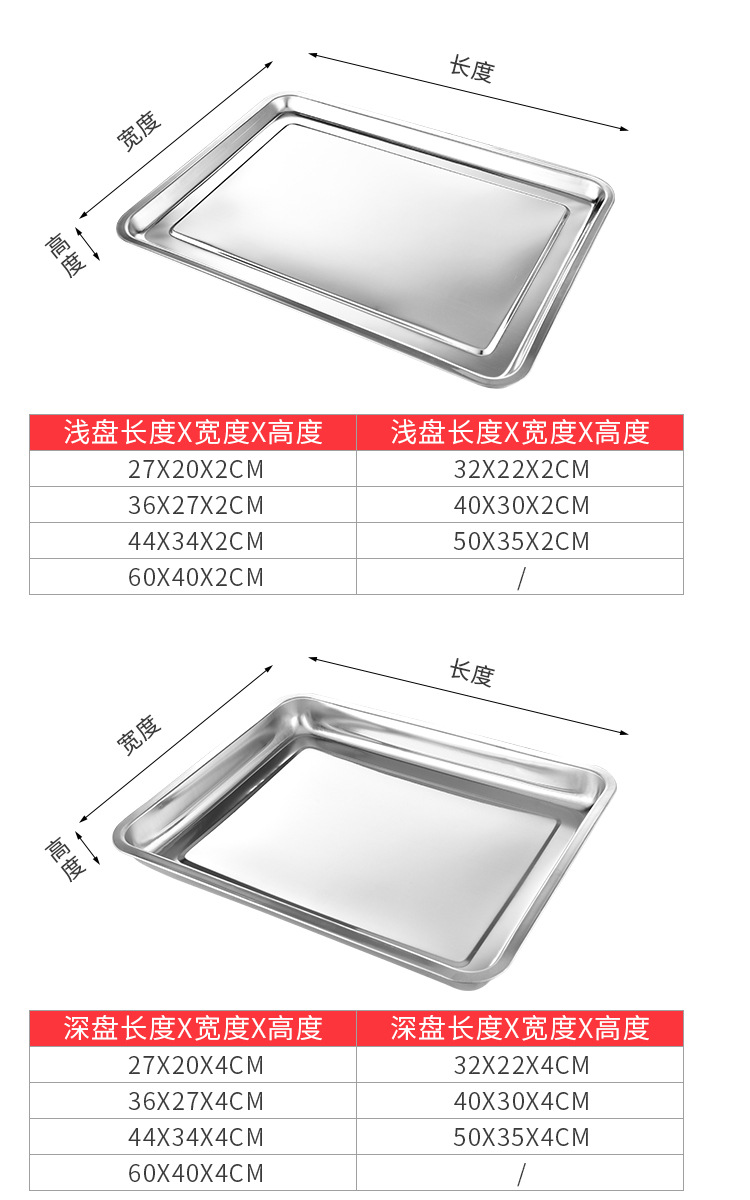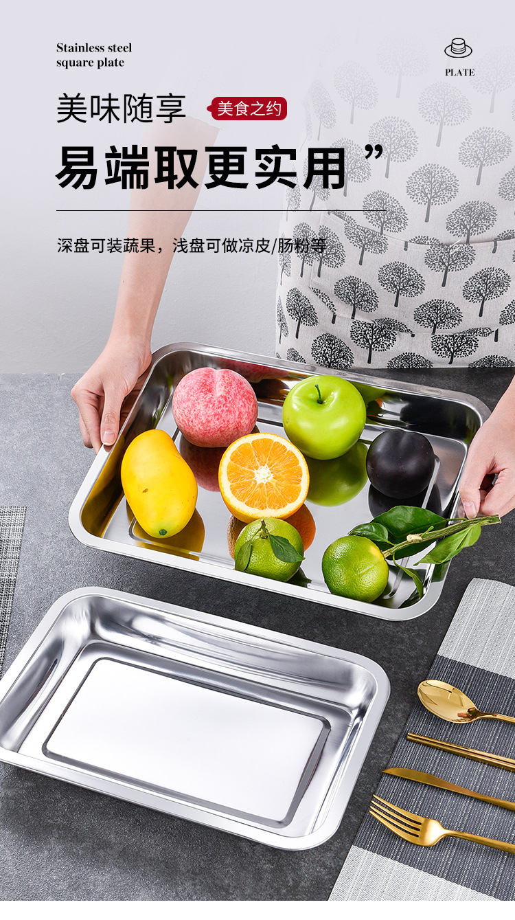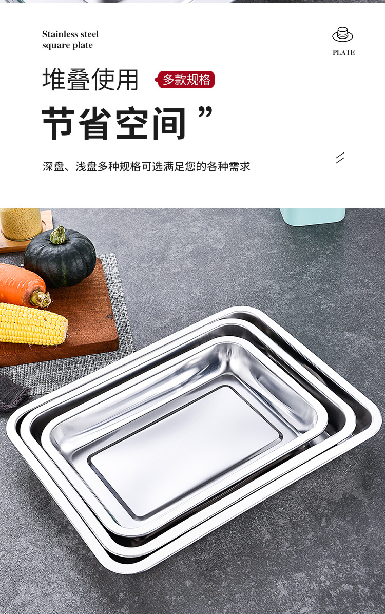 包装清单:1合恒工品 不锈钢方盘 蒸柜蒸车托盘 点菜柜备菜盘 烧烤店烤鱼小龙虾盘方形