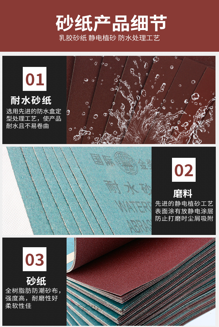 商品名称:犀利耐水砂纸氧化铝砂纸砂粒锋利 磨削持久砂纸